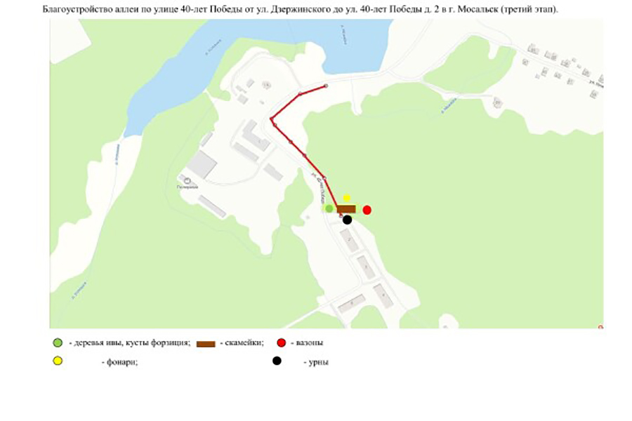 В Мосальске благоустройство аллеи по улице 40 лет Победы от улицы Дзержинского до улицы 40 лет Победы, 2. За благоустройство территории проголосовал 201 человек.