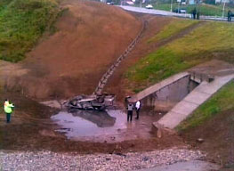 От удара легковой автомобиль вылетел с дороги, перевернулся и свалился в кювет. Высота крутого склона в месте ДТП около десяти метров. Водителю повезло, по всей вероятности машина проскользила по траве на крыше, будто на санках.