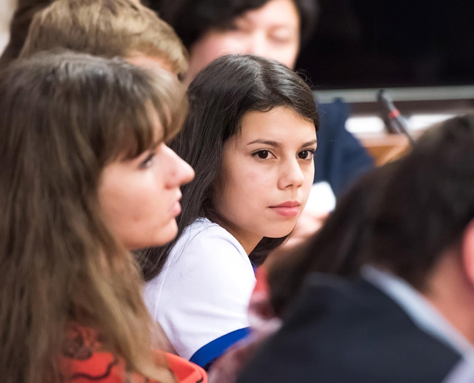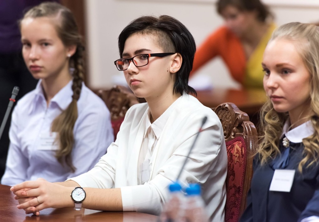 В этих креслах обычно сидят министры, но сегодня Зал заседаний Правительства Калужской области заполнили старшеклассники и молодые педагоги из Дзержинского, Износковского, Тарусского, Ферзиковского и Юхновского районов.