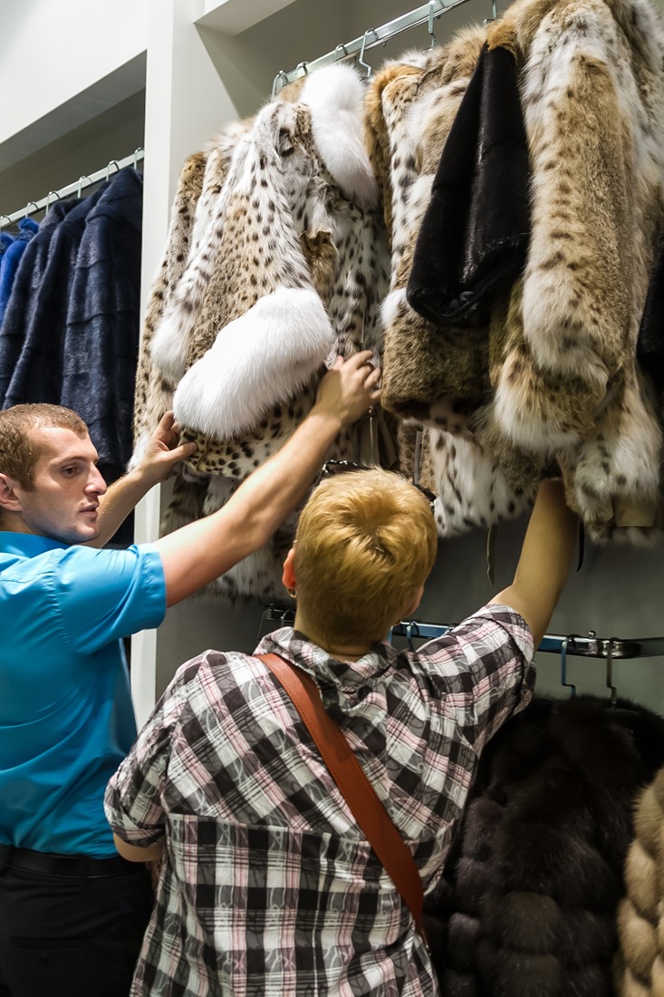 В магазине – ажиотаж: конечно, чем больше выбор, тем труднее принять решение. Хорошо, что спутника можно усадить в комфортное кресло, а самой отправиться в сопровождении консультанта на поиски своей идеальной шубы.