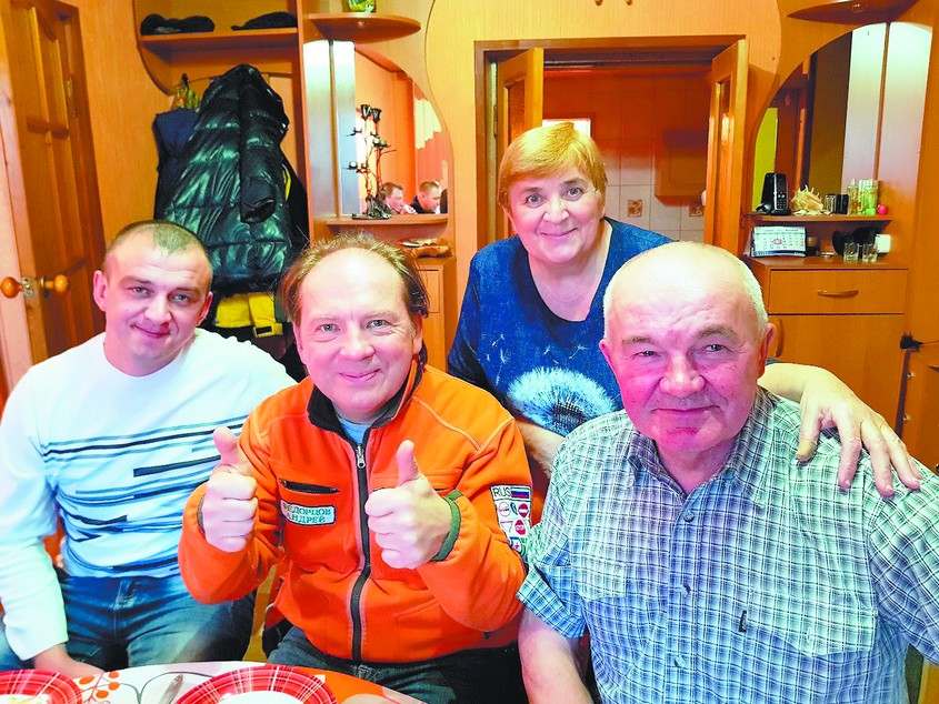 На съёмках программы «Главная дорога». Слева –направо: сын ШЕЛЯКИНЫХ Юрий, актёр Андрей ФЕДОРЦОВ, супруги Галина и Анатолий.