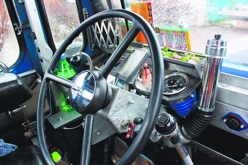 Внутри «Толик» также выглядит впечатляюще. Начинка продумана до тонкостей. Сиденье — из натуральной кожи, есть подставки под воду, магнитолу, мобильный телефон, несколько люков.