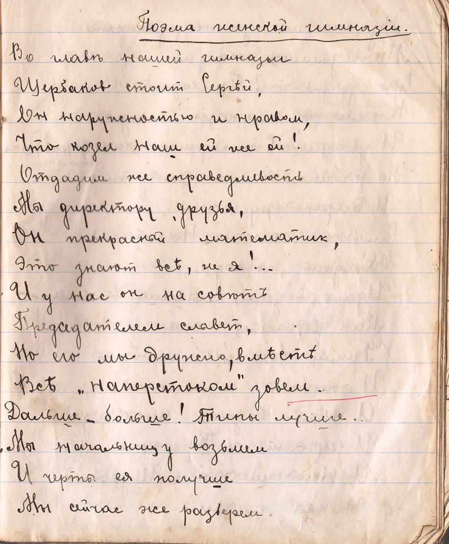 Это отрывок из дневника калужской гимназистки, с кинематографической точностью запечатлевшей жизнь молодёжи нашего города весной 1907 года. Старую тетрадь с записями уже в наше время нашла её племянница — профессор кафедры русского языка КГУ им. К. Э. Циолковского Маргарита Смольянинова, и передала в отдел краеведения Центральной городской библиотеки им. Н. В. Гоголя.
