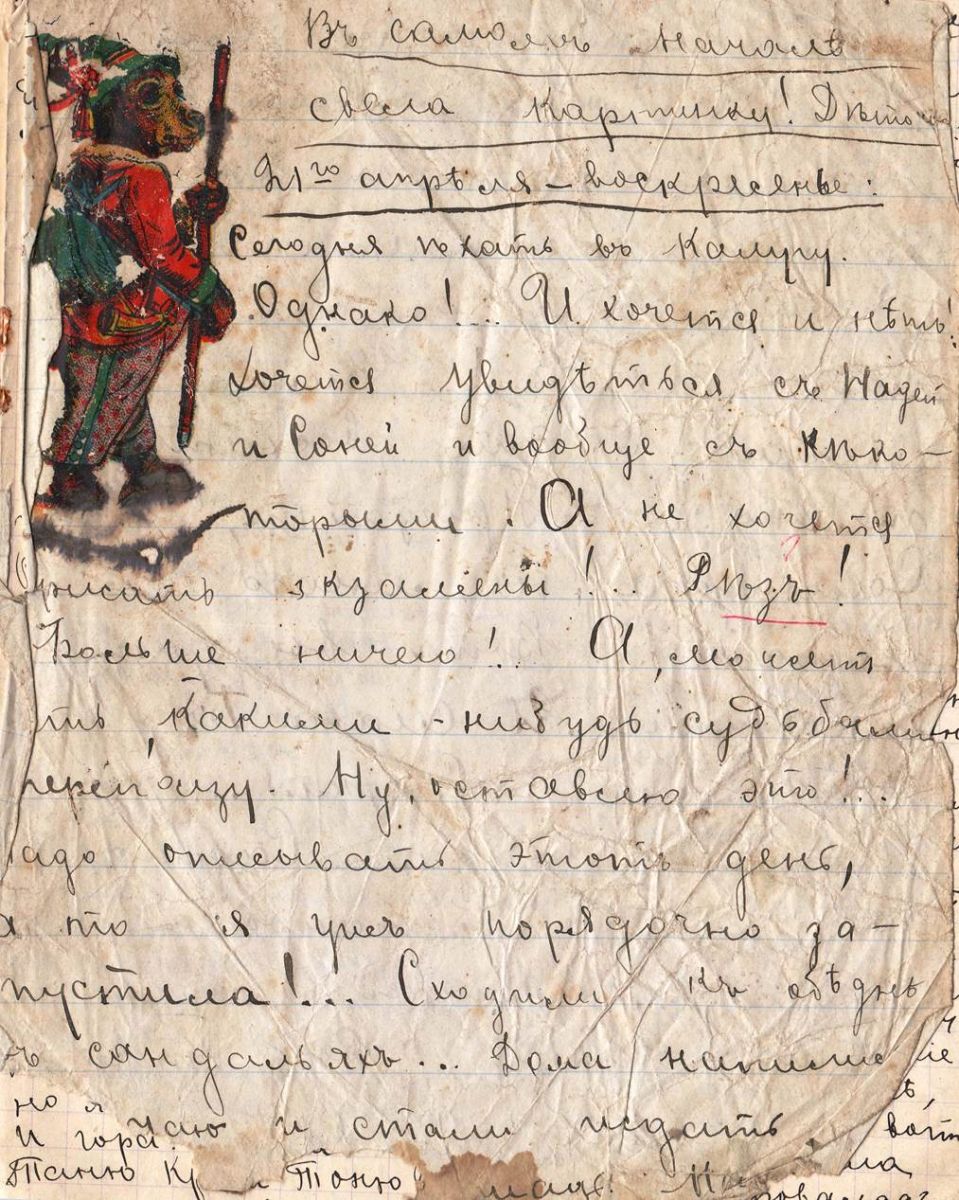 Причём этот язык почти не отличается от современного разговорного. Разве что обращает на себя внимание довольно часто употребляемое в дневнике слово «наикрепчайшее». Насколько можно понять из контекста, в те времена оно выражало досаду — что-то вроде «ёлки-палки» или, как сейчас говорят, «блин».