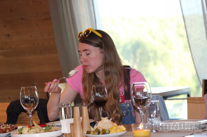 Естественно, на ужин у нас были исключительно натуральные продукты, выращенные на собственном огороде. Овощи, запеченные с муссом из рабиолы, ризотто свекольное с вележе пикантным, печеный камамбер с травами и гренками, кофейное парфе из рикотты, пуддинг на свекольной земле с лесными ягодами – это лишь некоторые из блюд, которые я попробовал.