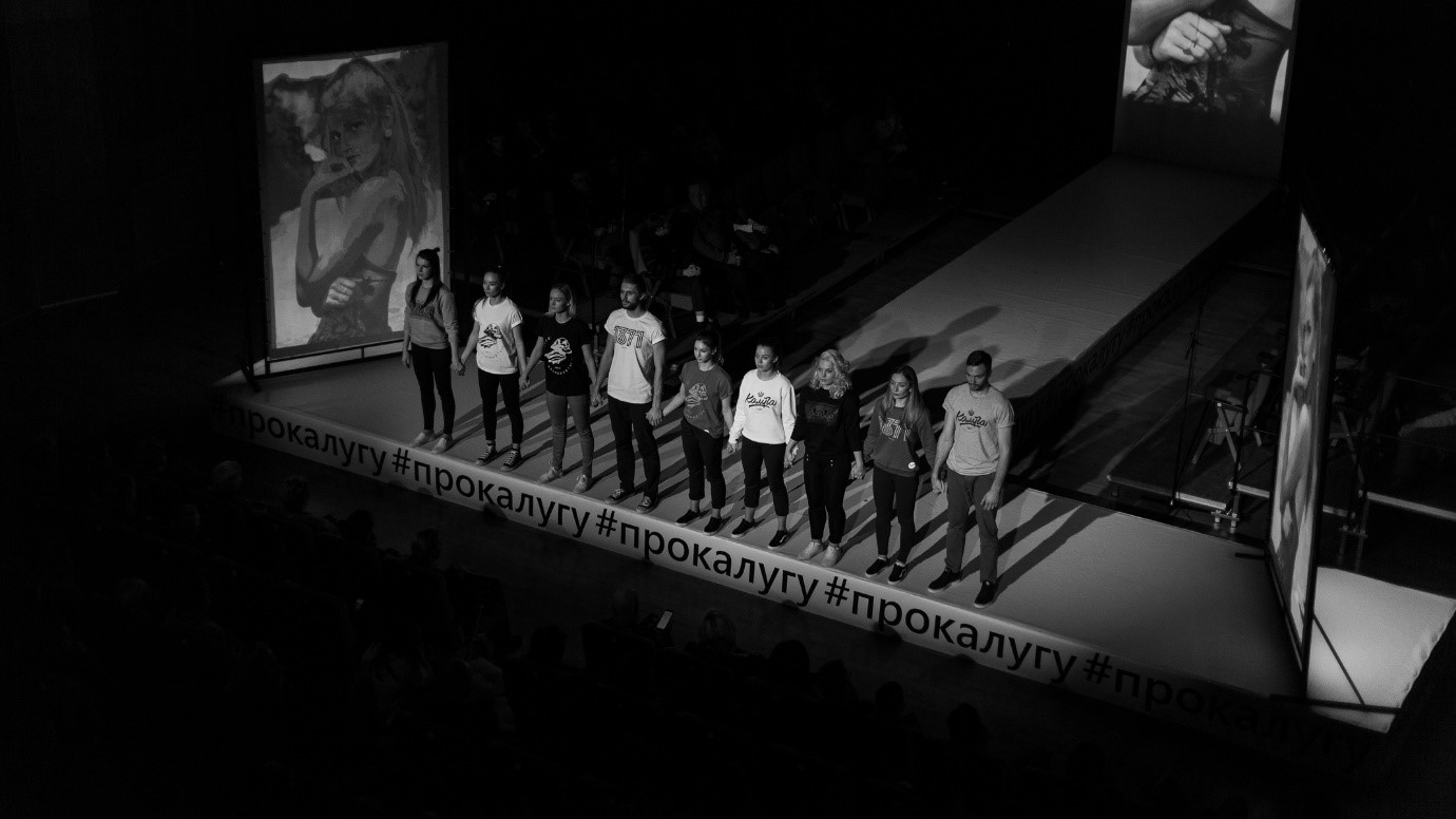 К сожалению, большинство калужан обратили внимание на «Новых людей» только благодаря скандальному спектаклю Талгата Баталова «#прокалугу», который открывал фестиваль. Громкие выкрики актеров: «Калуга – гребаное болото», мат со сцены, бутылки пива «Калуга» как символ вечности и космоса – кошмар! Срочно запретить! Возмутительно! Режиссер ничего не знает про наш любимый город! У нас же есть Циолковский! И космос! И… и вообще!