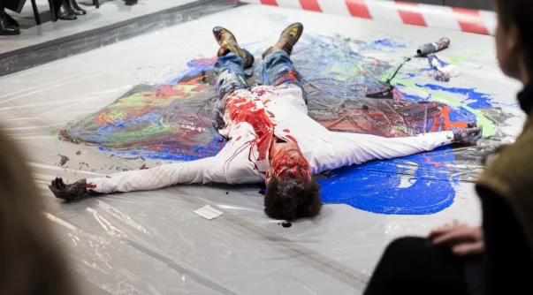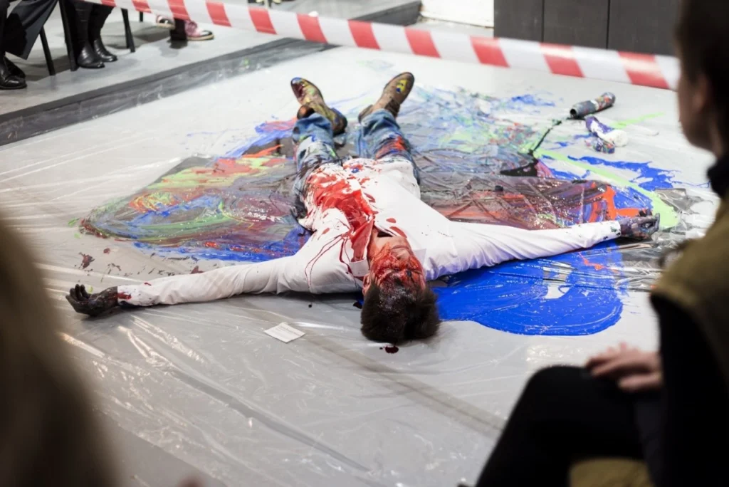 Под заинтересованными взглядами калужан актер обливался краской. «Портрет» («Новые люди–2018»).