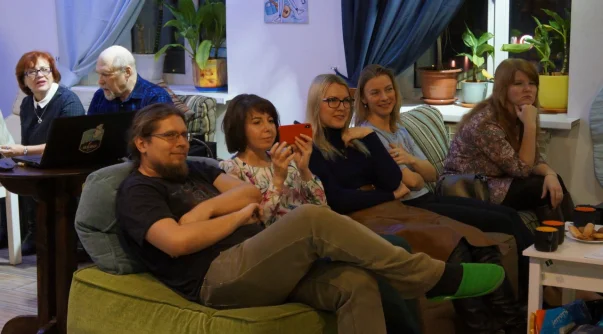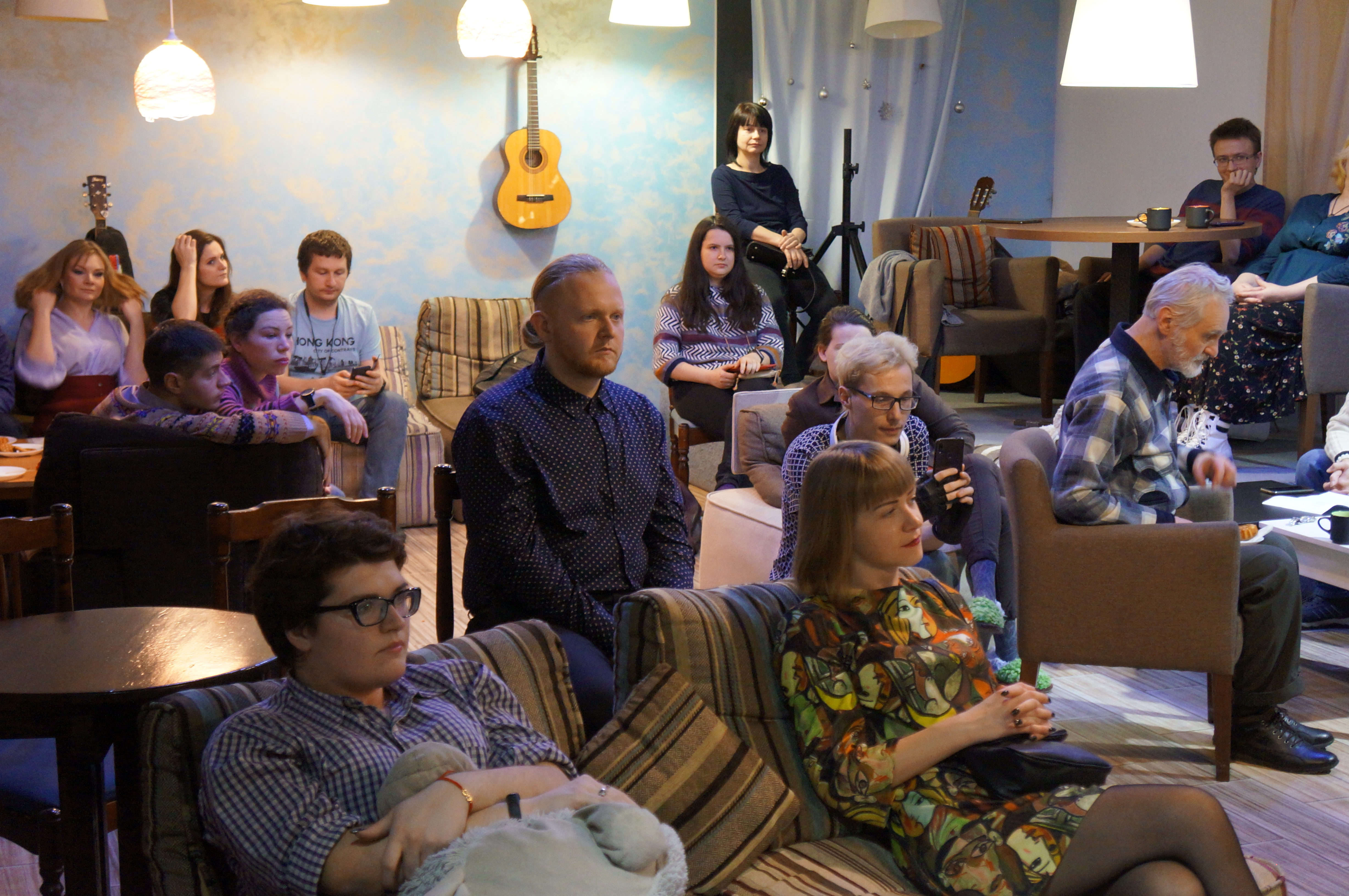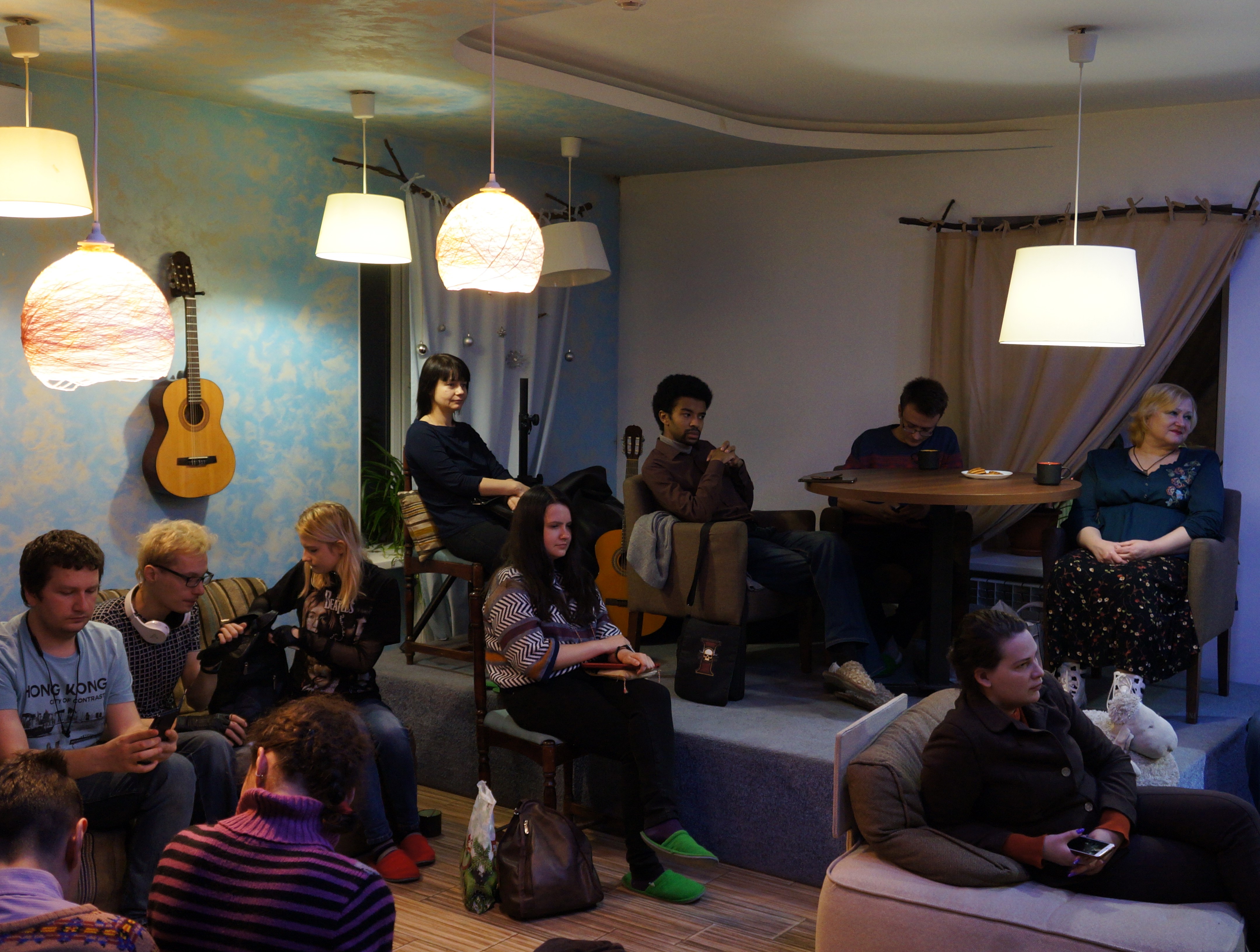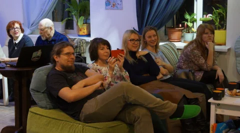 Они собрались в пятницу на «Небе», чтобы поздравить Станислава Колчина, послушать произведения друг друга, попить кофе и чай в приятной компании и негромко спеть под гитару.