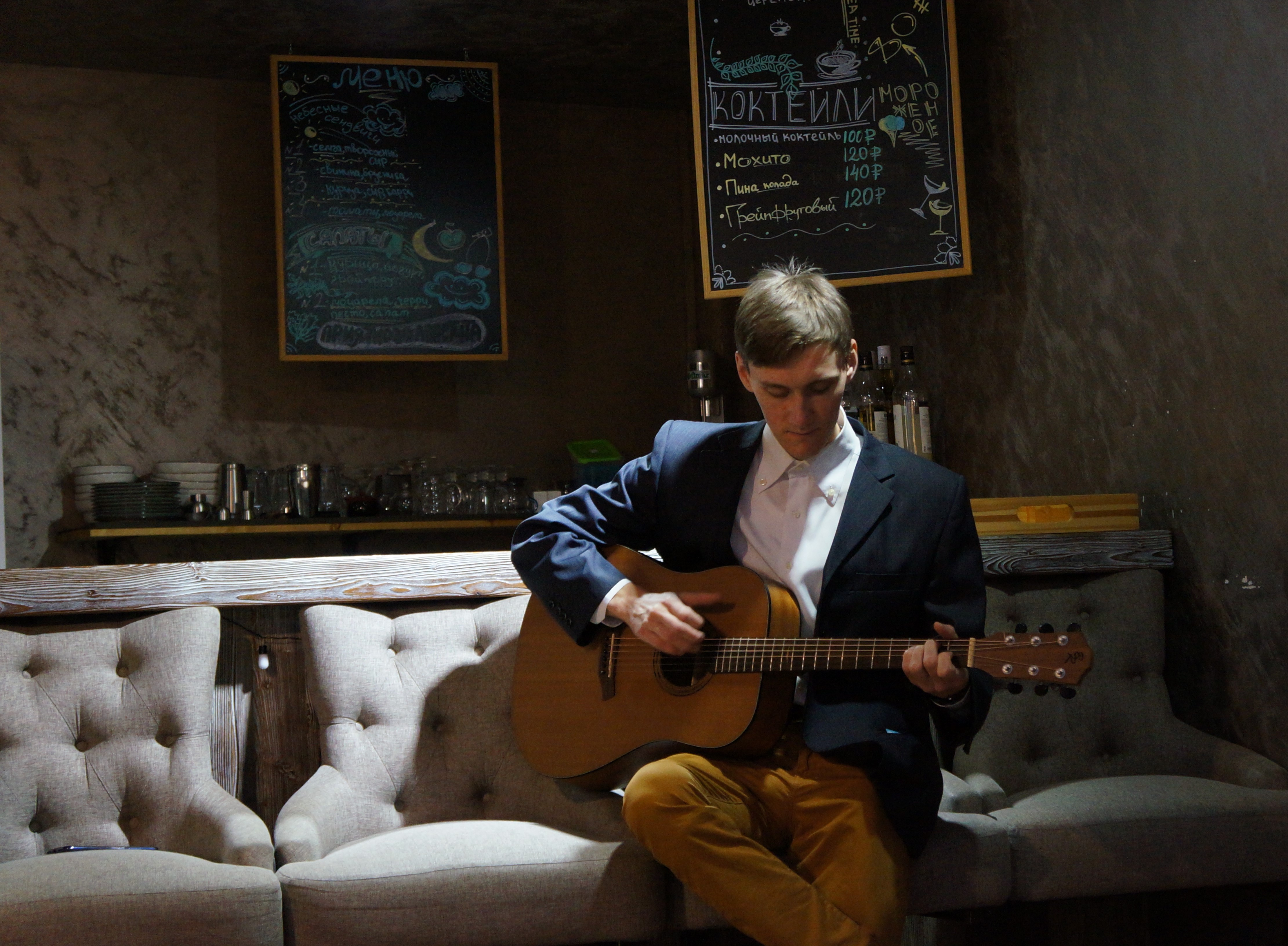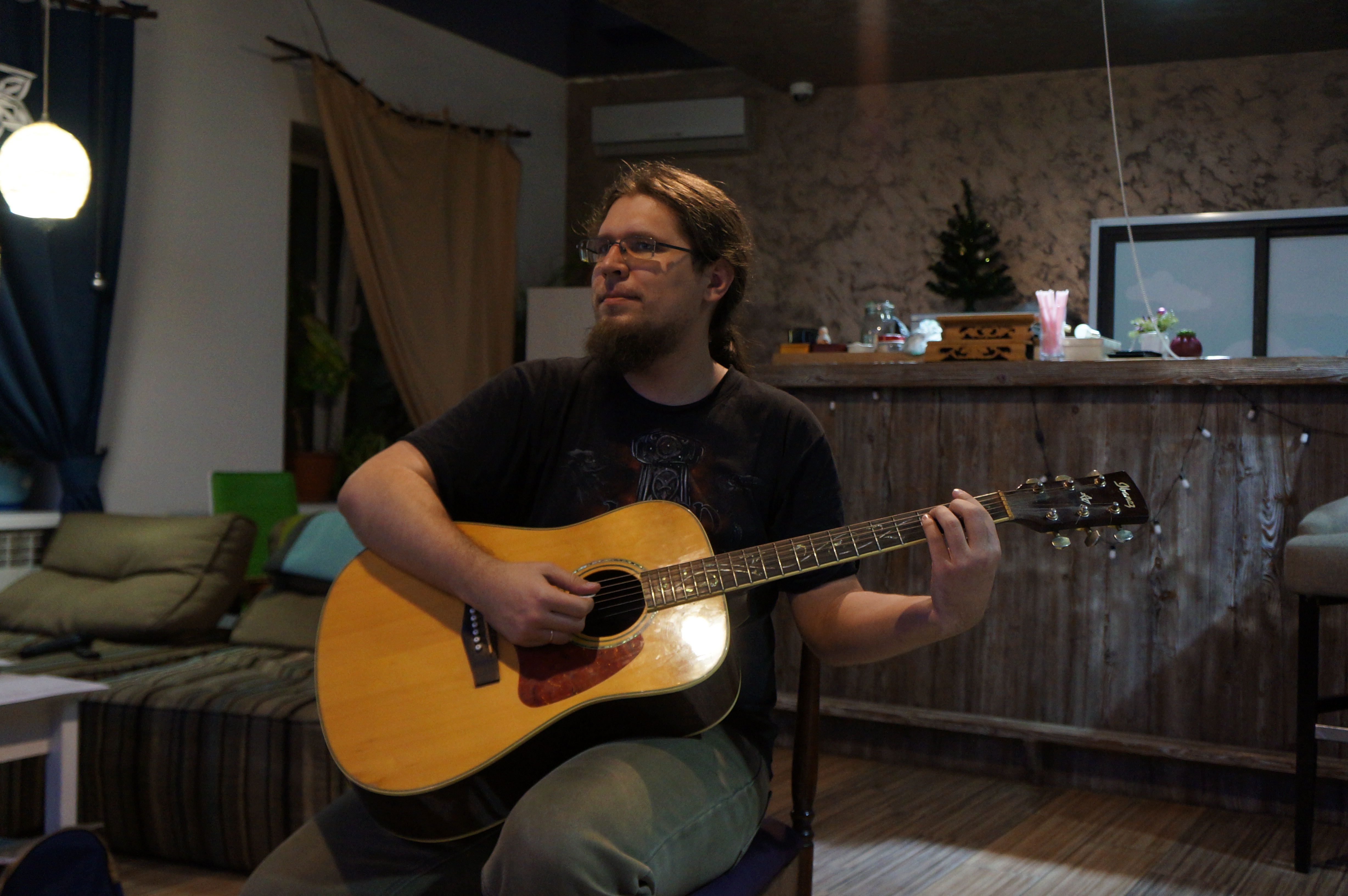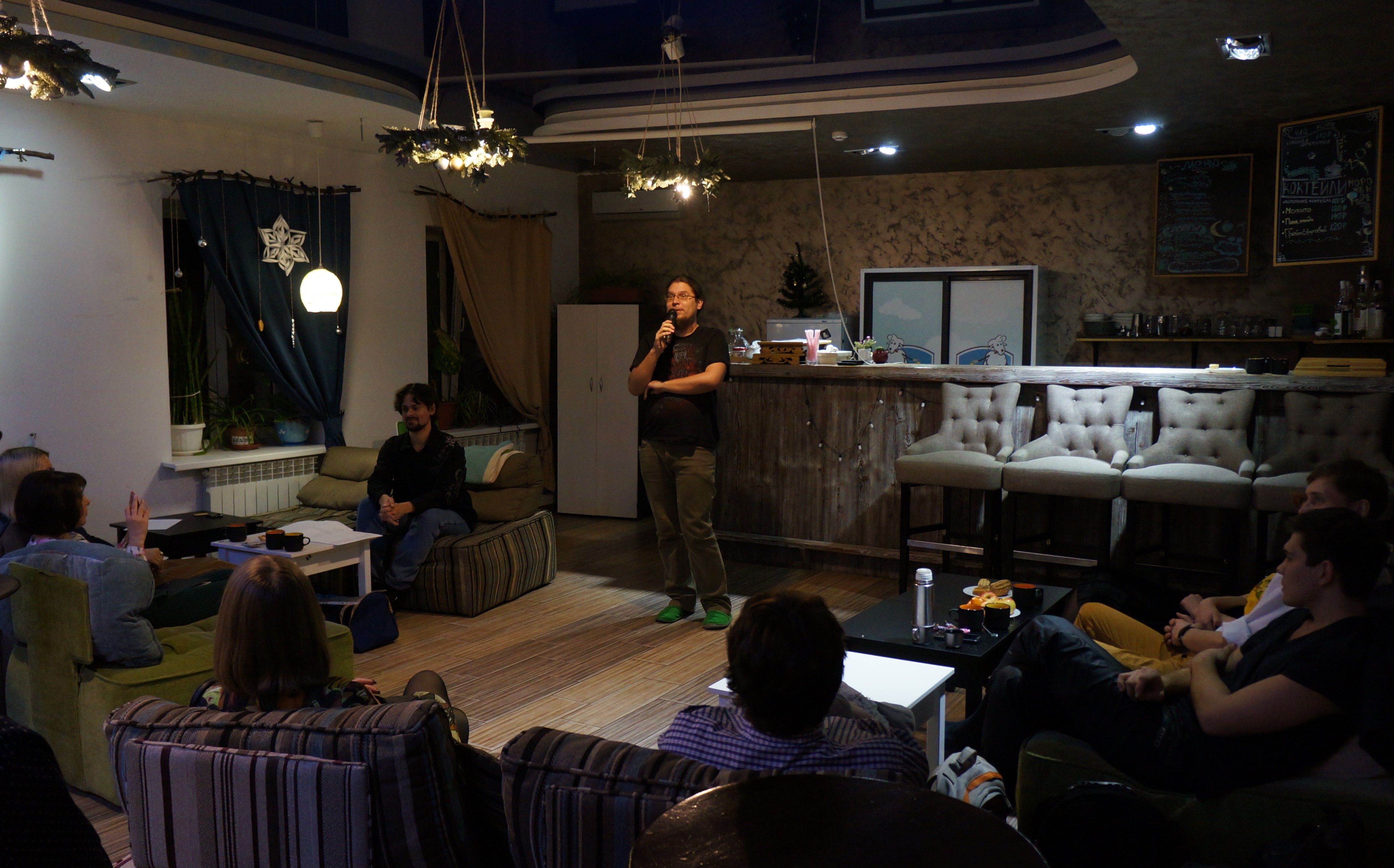 Они собрались в пятницу на «Небе», чтобы поздравить Станислава Колчина, послушать произведения друг друга, попить кофе и чай в приятной компании и негромко спеть под гитару.