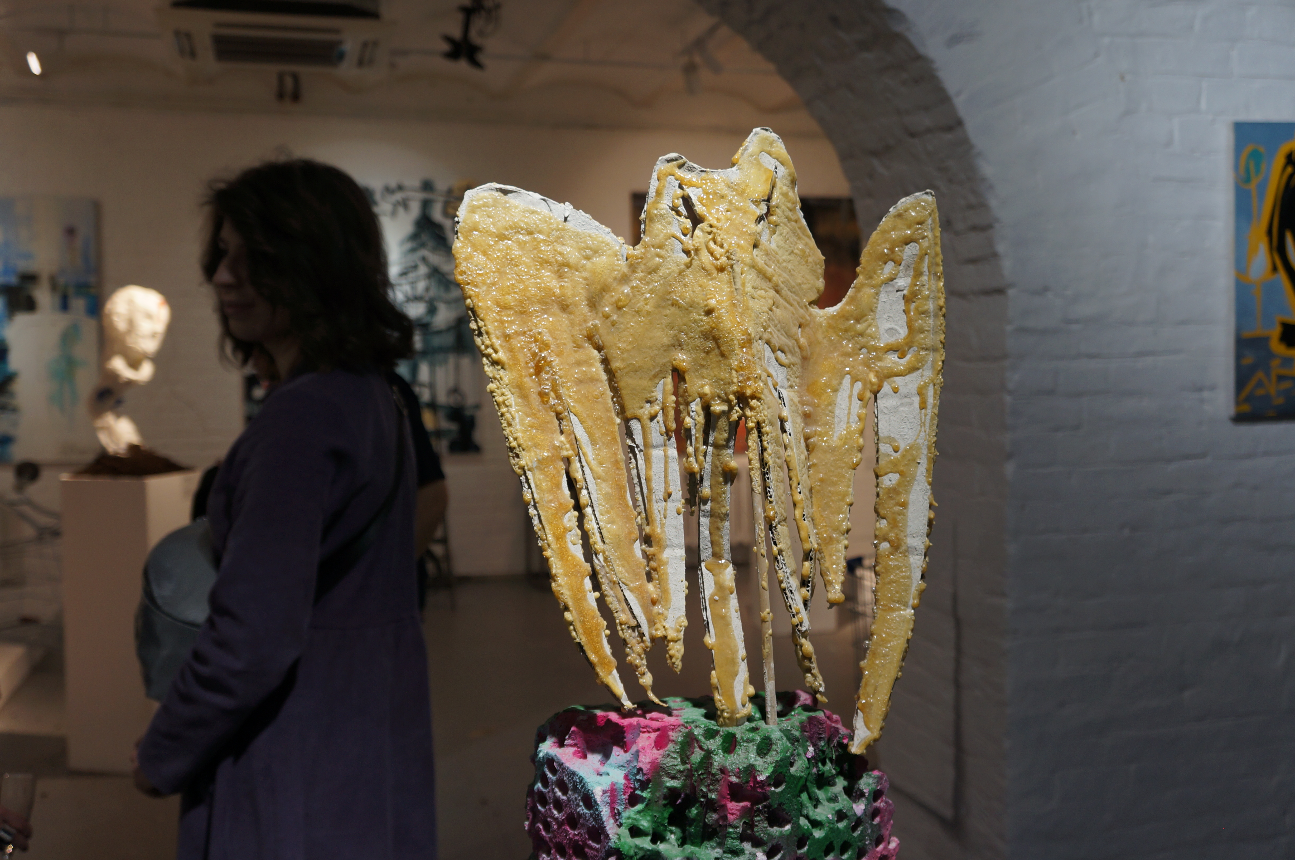 Александр Кокс – автор выставки «Полуфабрикат», открывшейся в ProArt’s на прошлой неделе, сделал то, что и должен был сделать. Яркими мазками пластика, стекла, красок и мела набросал отражение современного урбанистического мира.