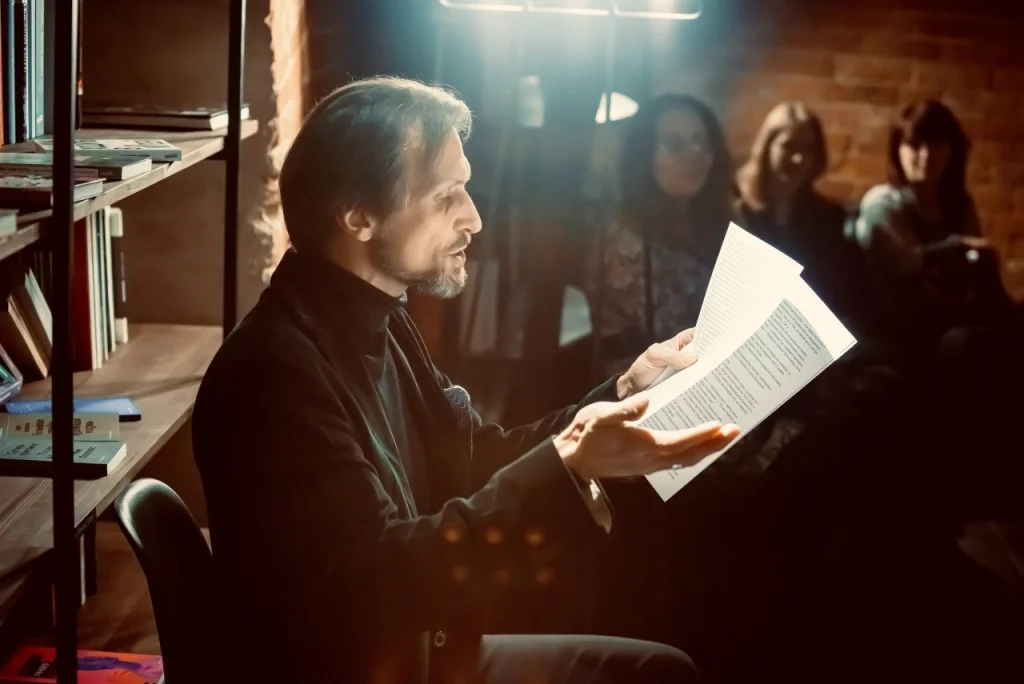 И было из-за чего – открытие арт-библиотеки было «усилено» запуском чтецкой программой «Вслух…» Ведагара Моргунова – профессионального диктора, преподавателя чтецкого мастерства и основ публичных выступлений.