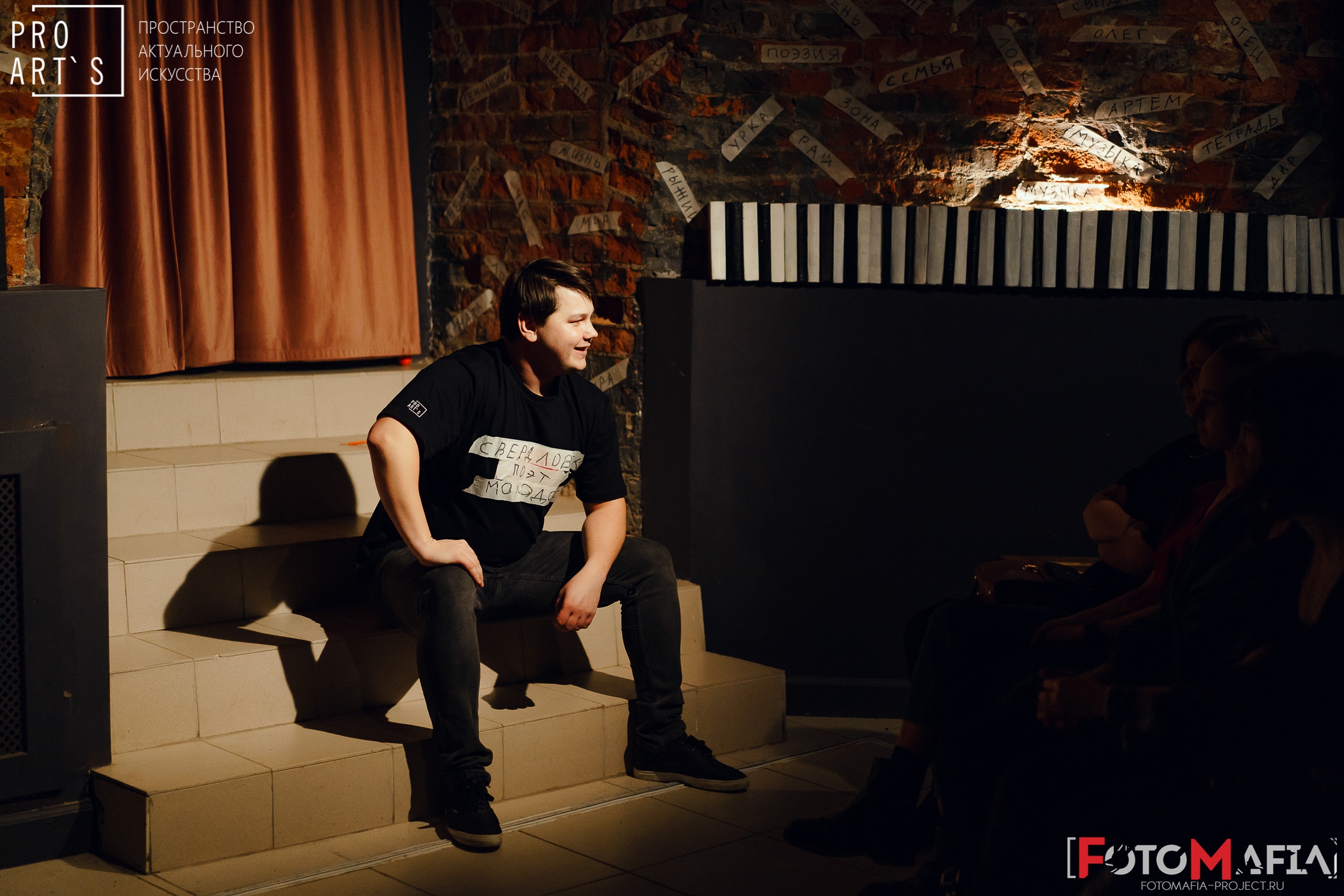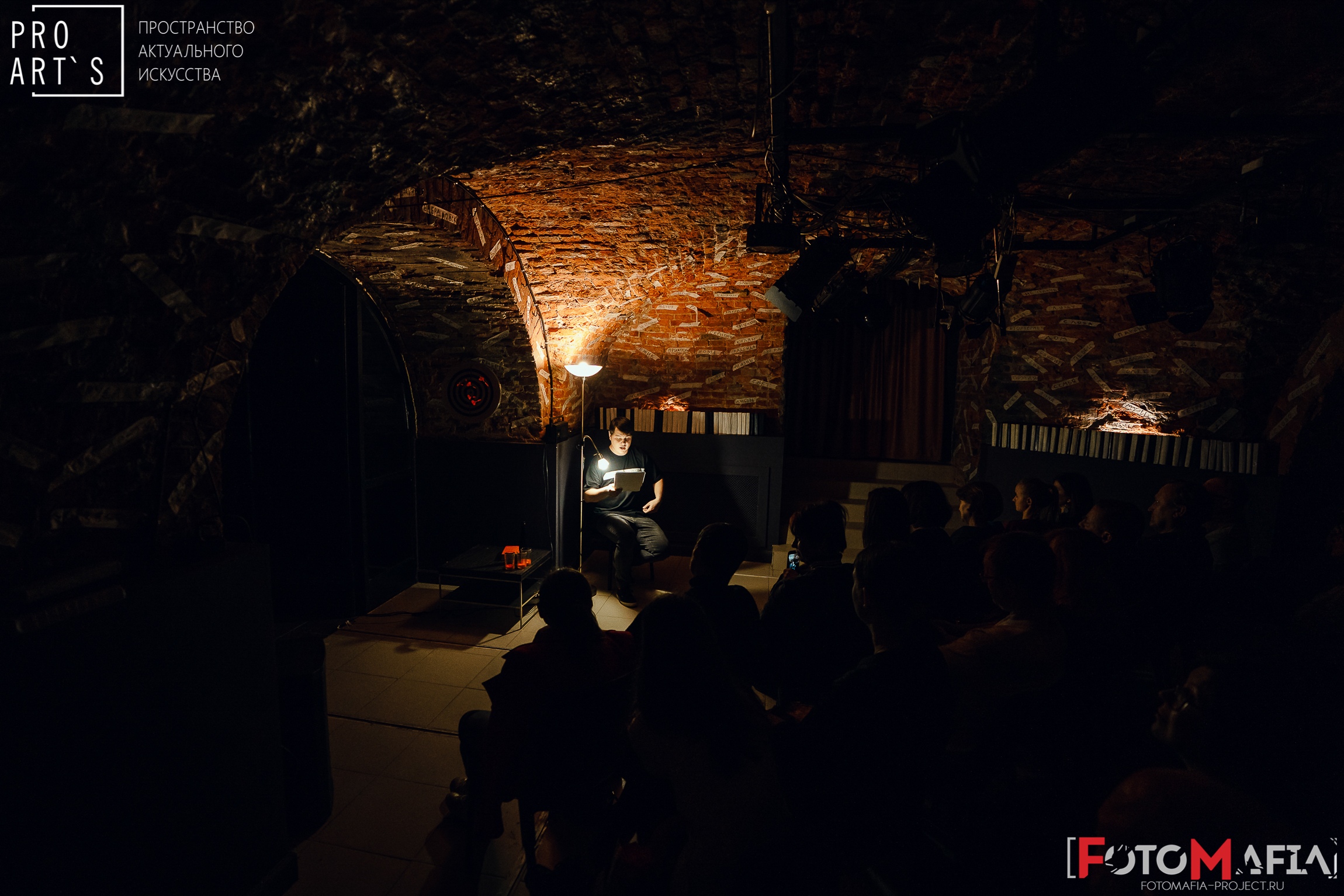 Создатели обещали спектакль-исследование, спектакль-путешествие по творчеству поэта. Вот на импровизированную сцену (которая, на самом деле, будет в каждом углу этого пространства) выходит Александр Панов. У него всего одна просьба – выключить звук на мобильных телефонах. И вот, когда все готовы, мы начинаем исследование.