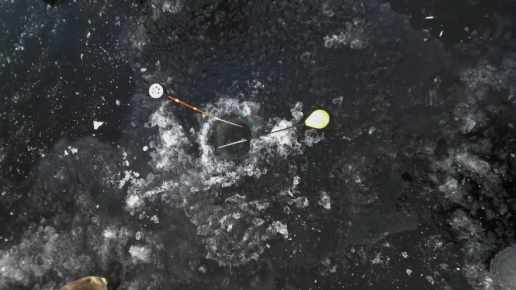 По опыту осенней ловли я выбирал места с глубиной 2.5-3 метра, но и отмели не обходил стороной. Разместив орудия ловли, пошли «баловаться мелочью». От жерлиц отошли на почтенное расстояние, дабы не пугать хозяйку водоема, а для лучшего обзора использовали бинокль. Прошел час, количество матросов на льду росло – щука не проявляла активности. Через час первый выстрел флажка. Подходим аккуратно, дабы не напугать рыбу заранее. Катушка медленно крутится, показывая, что рыба на том конце есть. Небольшая остановка катушки…Подсечка...и началась борьба… К сожалению уже под лункой щука развернулась и выплюнула живца. На взгляд, порядка 1.5 килограмм. Было еще несколько «загаров», но все в холостую.
