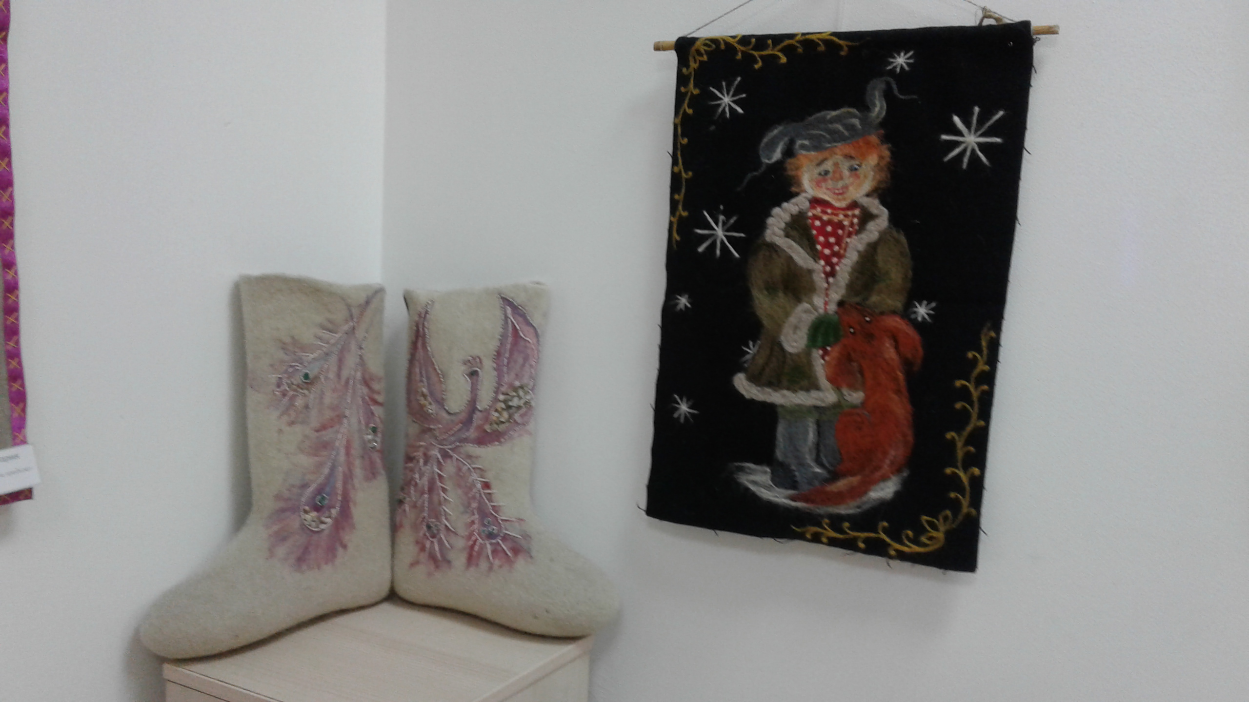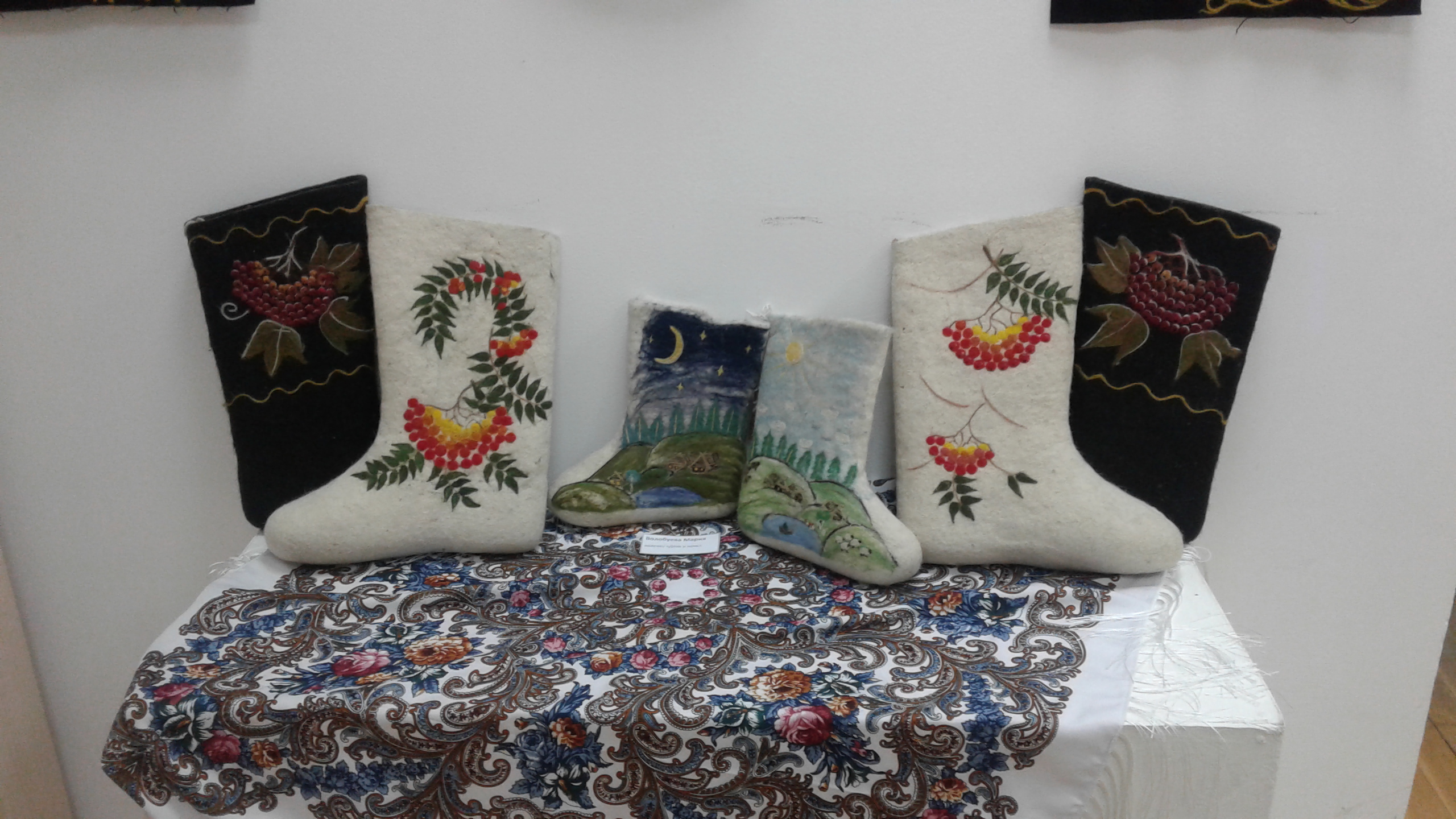 28 февраля в Боровском культурном центре им. Д.А. Жукова (Ленина, 52) открылась персональная выставка Марии Волобуевой «Я с Урала!». Автор работает в технике художественная обработка шерсти и текстиля. За день до открытия Мария провела мастер-класс по валянию из шерсти, на котором мы и познакомились с ней, с её работами и некоторыми секретами её мастерства. Увидеть авторские календари, необычные валенки и панно можно до 13 марта.