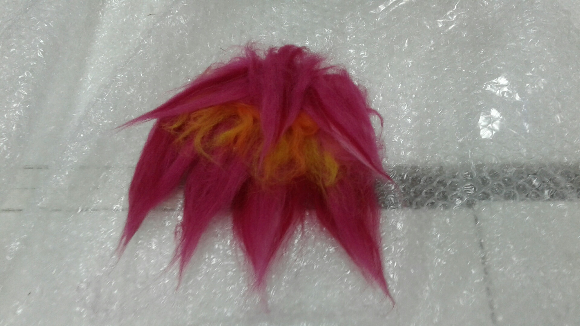 В центре стола – шерсть – разноцветные пряди для валяния. Каждый участник мастер-класса сначала закрывает глаза и представляет себе цветок, который хочет сделать, а потом берет шерсть нужного цвета и начинает ее щипать на маленькие прядки.