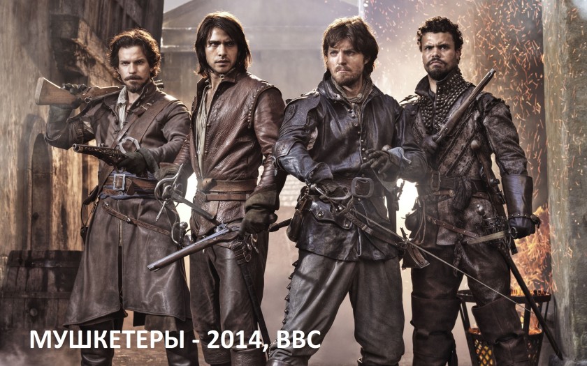 Традиционно не обращая внимания на предшественников, британские кинематографисты в 2014 году порадовали сериалом «Мушкетеры». Это очень основательное кино, впрочем, как и все, что производится компанией BBC. Это экранизация по очень отдаленным мотивам. Прежде всего, это сериал в форме «случай недели», т.е. эпизоды не связаны между собой. Да, бедный гасконский дворянин Д’Артаньян прибывает в Париж делать карьеру, ссорится и дружится с мушкетерами. Да, есть кардинал, миледи, король и королева. Все остальное – плод вольной фантазии сценаристов, цепь отдельных вполне законченных героических деяний мушкетеров. Фильм снят в шикарных интерьерах 17 века. Шикарные же костюмы (браво художникам!) уже должны насторожить внимательного зрителя: все вроде так, но в то же время сдвинуто к нашему веку. Особенно одеяния кардинала Ришелье и невероятно стильные, из натуральной кожи, костюмы мушкетеров. Да и вся концепция сериала сдвинута к Европе начала 21 века.