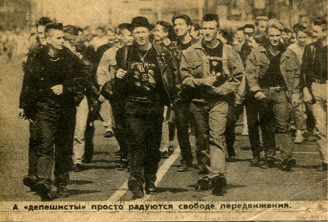 Вспоминает Константин Заводник, администратор фан-сайта “Depeche mode”: «Когда 9 мая в день рождения Дэйва Гаана было одно из первых сборищ, милиция не знала, как реагировать. 9 мая, День Победы, а тут идет молодежь в косухах с британским флагом, милиция думала, что «нацисты» идут. Милиция не знала, что делать, правда ничего и не делала».