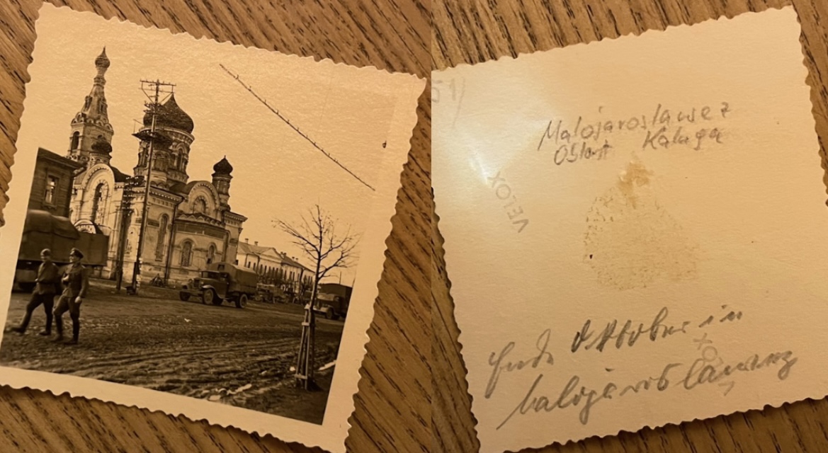 Малоярославец. Внизу подпись немца, который делал снимок, а сверху подпись торговца, который его продал