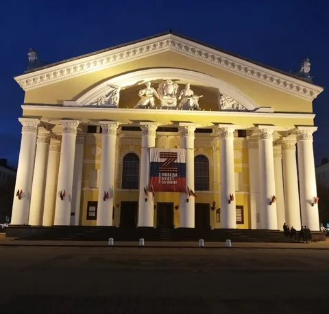 У здания драмтеатра нейросеть увидела народное ополчение, которое шло защищать Москву от интервентов.