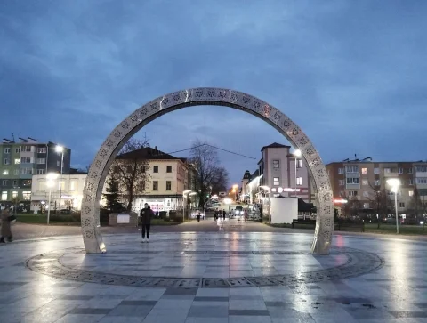 На входе в парк культуры и отдыха нейросеть «вышила» красные узоры.