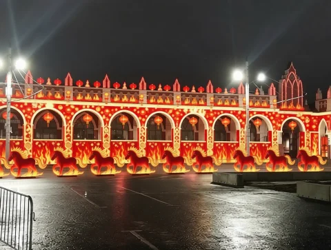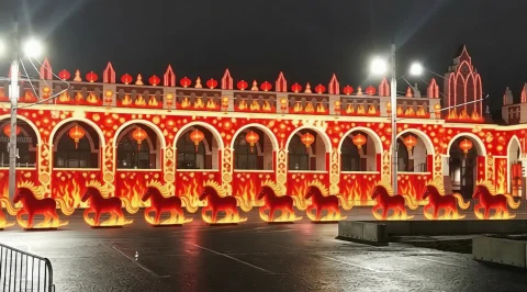 Гостиные ряды - гордость старинного города благодаря нейросетевому чуду, вдохновленному символом года: Красной Огненной Лошадью горят, как живой огонь.