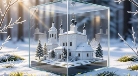 А чтобы у вас была возможность поздравить родных и близких, мы создали поздравительные открытки с образами калужских храмов. Мы попросили нейросеть преобразовать наши фотографии в картинки-поздравления.