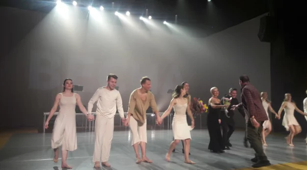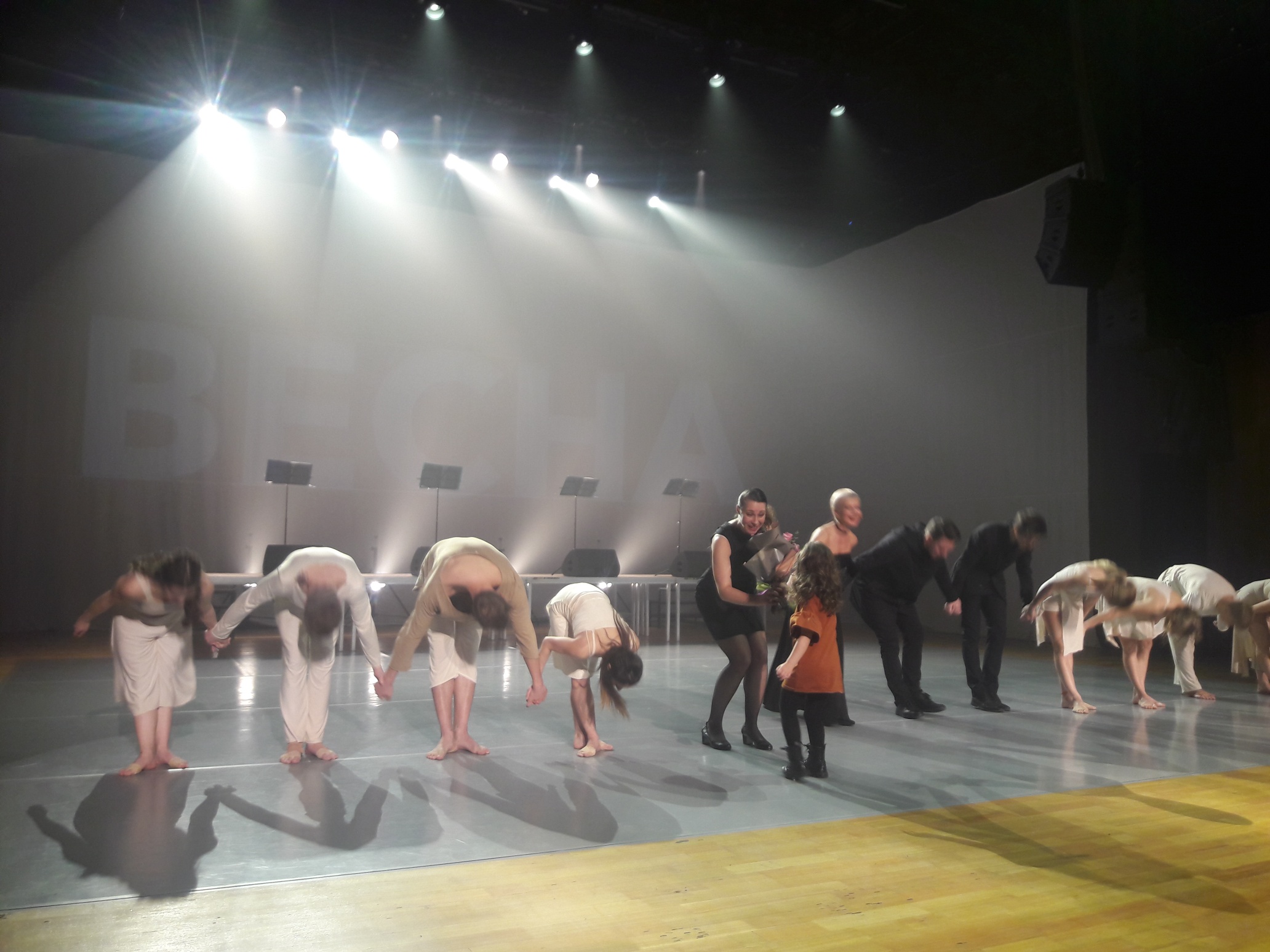 Во время просмотра я невольно задумывалась: а если убрать что-то – музыку или видео и текст? Будет ли полноценно звучать история? Зачем мы в современном мире всё чаще обращаемся к таким вот формам? Ведь можно поставить хореографическую постановку? Или просто спектакль – традиционный, где всё расписано по ролям. Можно. Но ведь можно и так. И эта конфигурация мне кажется удивительно органичной и ёмкой. Вот затихает музыка и танец, зато усиливается текст. А здесь, напротив – слова уходят в тень, но высветляются фигуры танцующих. Или вдруг на экране вспыхивают сотни звёзд, и ты будто оказываешься в невесомости – и слово вечность начинает звучать ярче, сильнее, объёмнее.