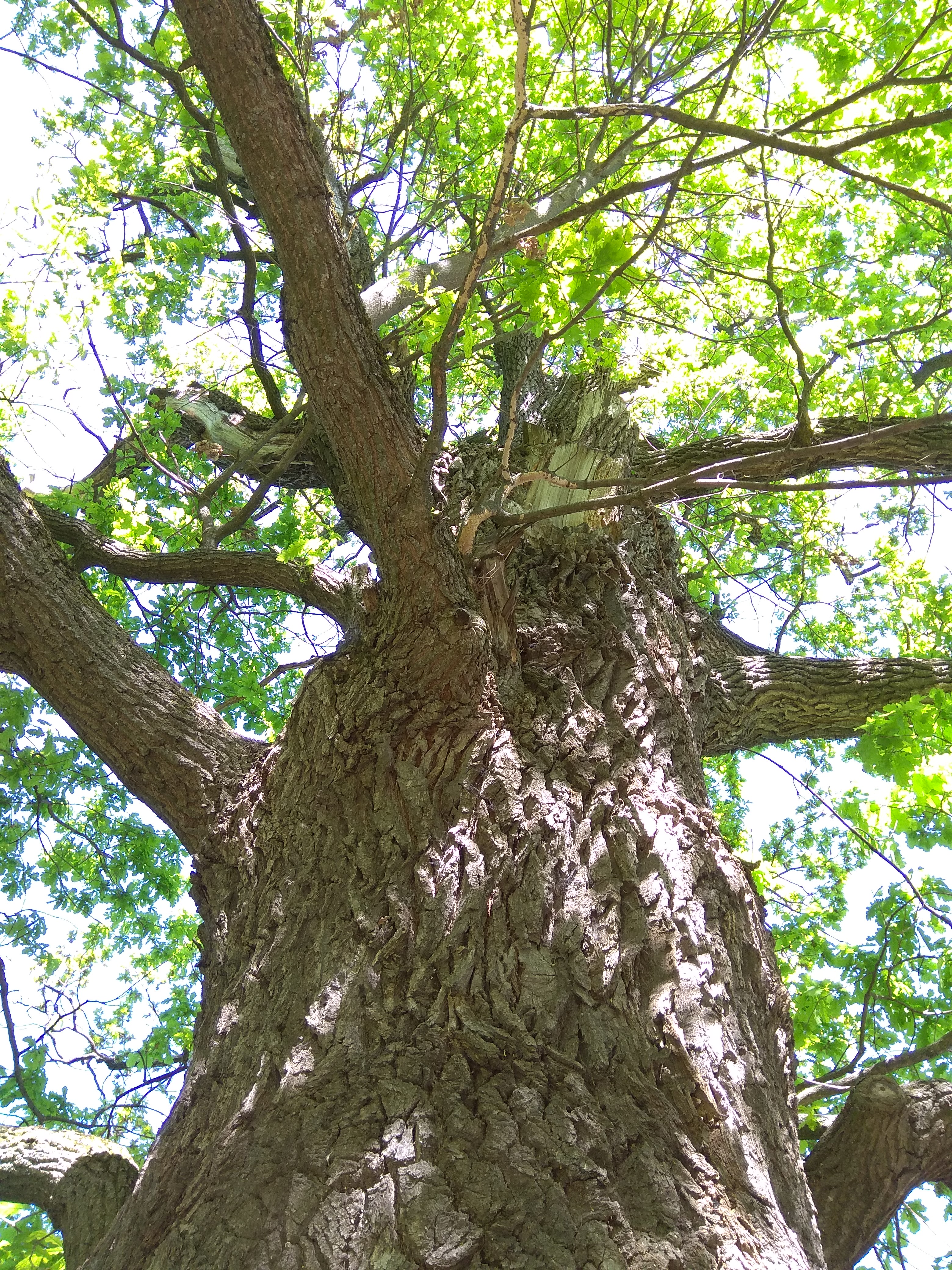 Так вот на территории дома-интерната есть ещё один дуб. Он, пожалуй, моложе рощинского, зато, как и положено молодому, красивее.