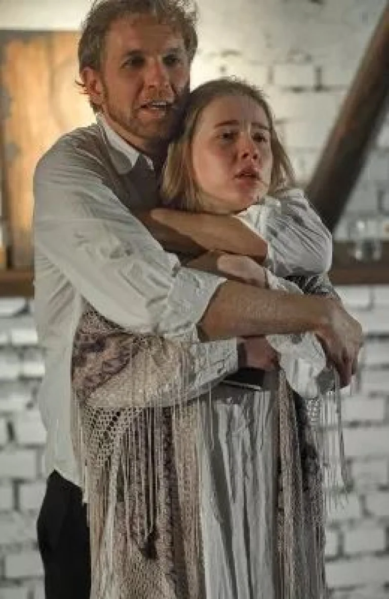 Весь полуторачасовой спектакль, лишенный изначального драйва, превратился в говорильню. Правильную, понятную. Многословность убила действие. А ведь в этом спектакле все построено именно на внутренних посылах актеров. Практически пустая сцена не дает спрятаться актеру за декорации, реквизит. К тому же площадка сцены «Под крышей» коварна. Зритель видит глаза. И в них ни на секунду не должна мелькнуть фальшь. Иначе все рухнет и поднимется театральная пыль.