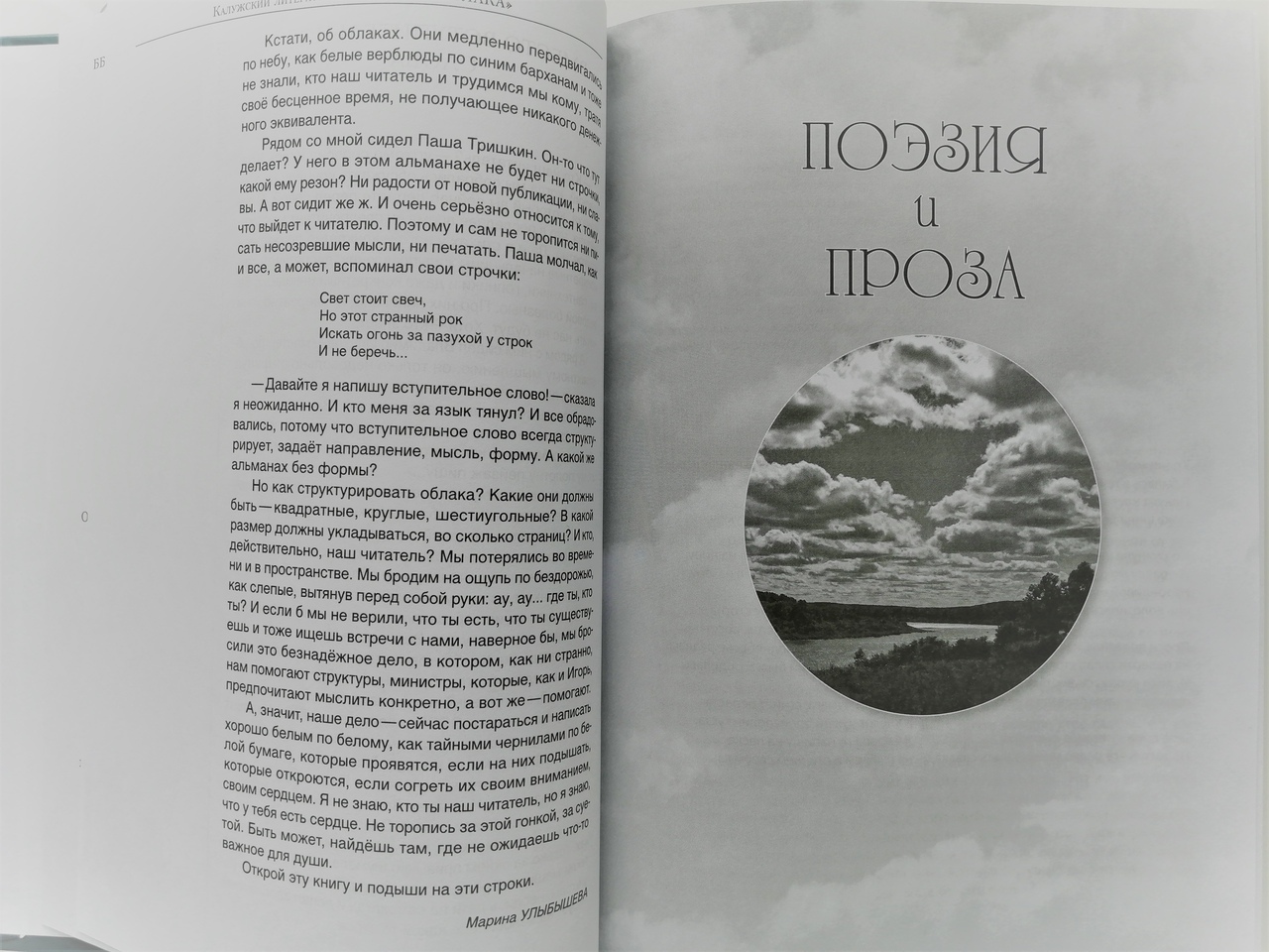 В литературной жизни Калуги это, конечно, – «ОБЛАКА» – ОБластнойЛитературныйАльманахКАлуги или ОБластьЛитературнаяАльманаховскаяКАлужская или ОБЛАчное_хранилище_файлов_Калужской_ литературы. Простенькое, на первый взгляд, название несёт в себе много шифров.