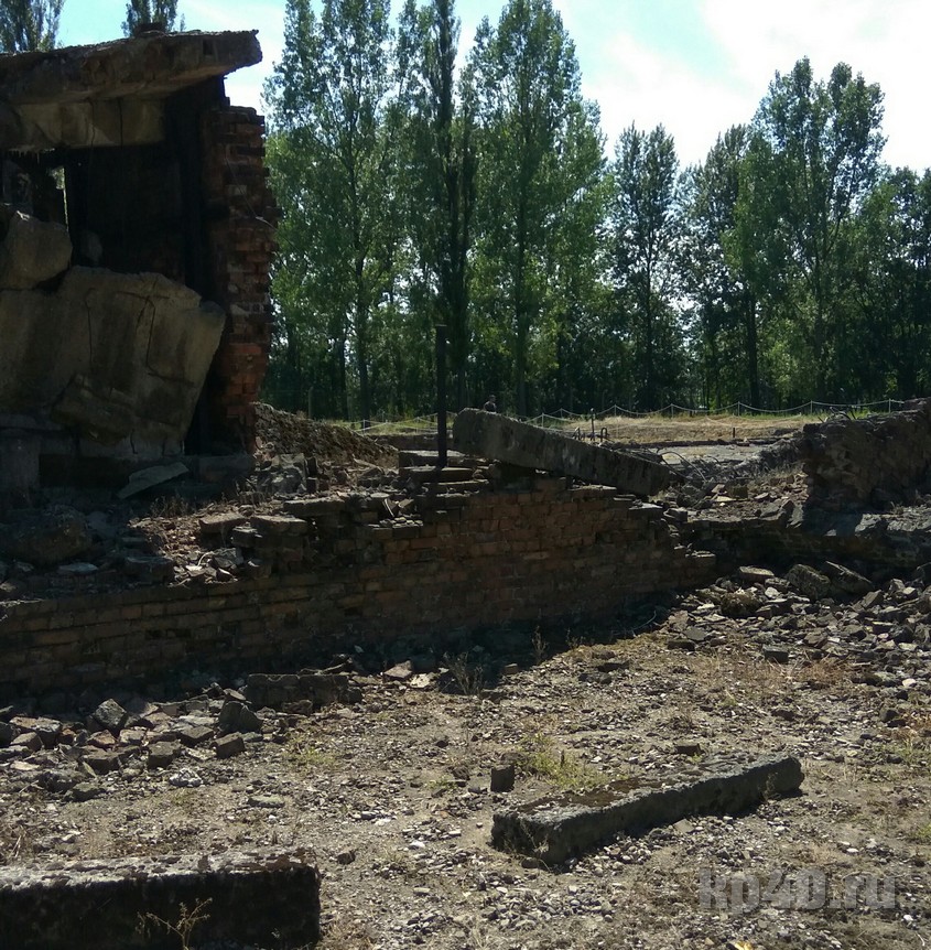 Идем дальше. Это фотография одной из газовых камер и крематория , которые нацисты взорвали перед отступлением. Запах гари здесь стоит до сих пор.