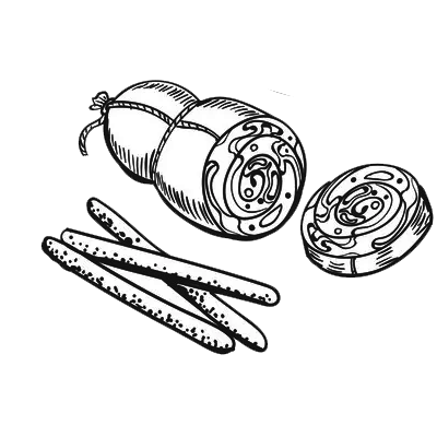 Всего мясных деликатесов – около 15 наименований: бараньи колбаски и купаты из свинины и говядины, предназначенные для жарки, абсолютно готовые к употреблению колбасы, рулет из утки и даже сало: пряное и соленое. Это сало свиней породы мангалица венгерская, которые круглогодично проживают и питаются на свежем воздухе. Все корма в хозяйстве свои, поэтому мясо экологически чистое.
