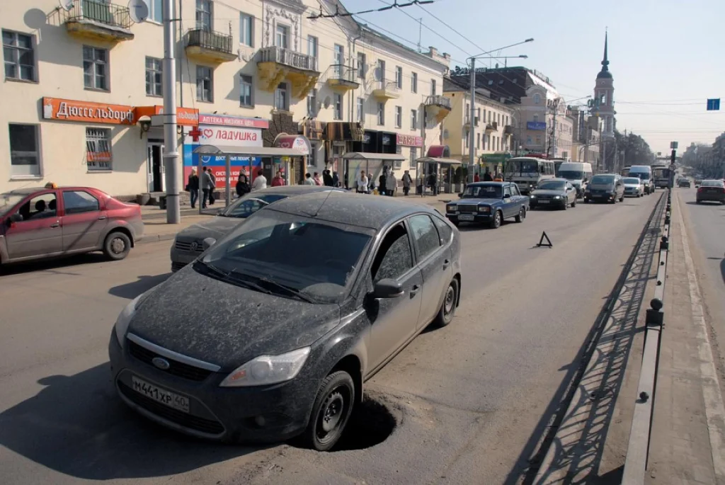 Этот "Форд" сегодня провалился на улице Кирова в районе 11 часов утра.
