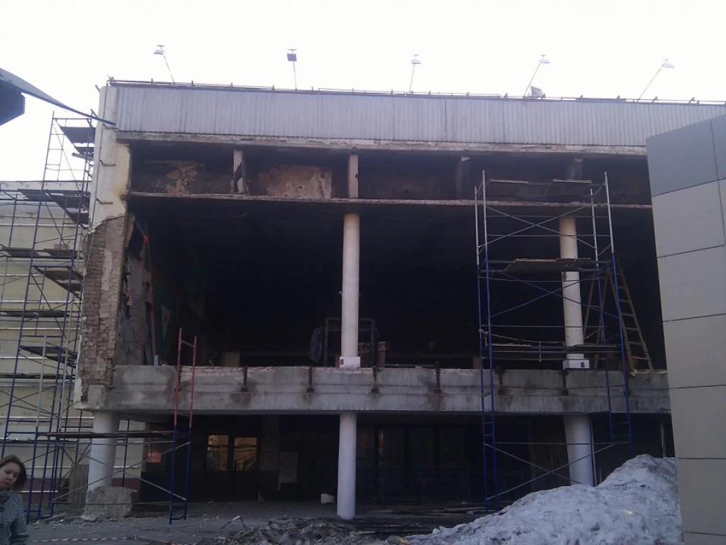 Сегодня начался ремонт фасада бывшего ДК Строитель со стороны площади Победы