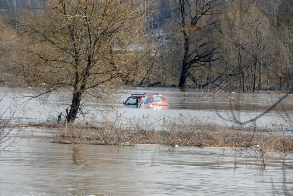 Сегодня некий товарищ решил проехать по нижней дороге под дамбой со стороны Оки. А водички разлилось уже много. Похоже, что его развернуло, или он ориентировку потерял. Короче. Вылез на крышу авто и дожидался пока его спасатели на надувной лодке не спасли.