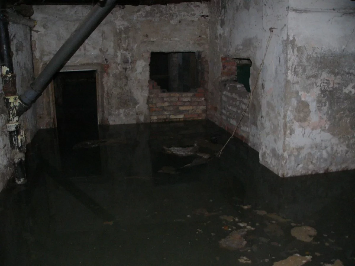 Решил добавить фото, хотя запах она передать не сможет. Глубина "озера" в этом помещении примерно 0,8-1 м. Над данным местом подвала располагается кухня яслей, в которой готовят еду для детишек от 1,5 до 3-х лет (на фото видна сливная труба из кухни МБДОУ, мне всегда было интересно, какой сантехник её "приладил" с уклоном 45 градусов).