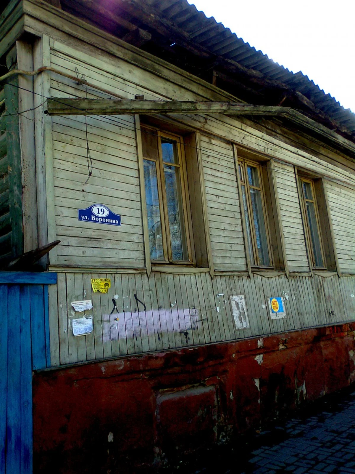 На улице Воронина, 19 (которая находится позади театра) рушится дом. Свисает кое-какая конструкция от дома. Как это назвать, не знаю, посмотрите на фото. Никаких ограждений. Большинство этого не замечают и идут прямо под этим ужасом. На крыше тоже тихий ужас, пока тихий.