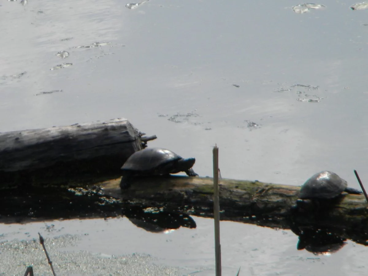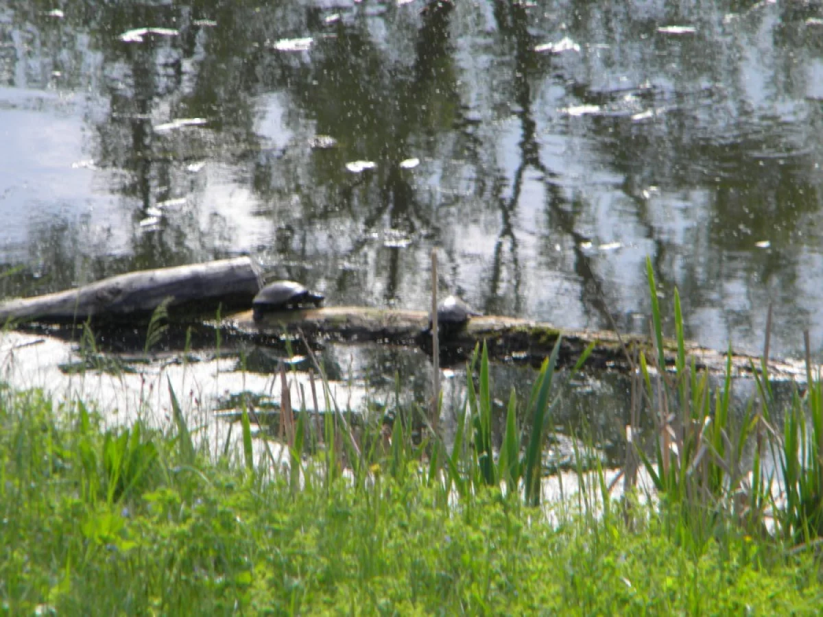 Делал фото муж и был очень удивлен увидев в пруду расположенном в черте города двух черепах сидящих на бревне, на самом деле их три, живут довольно давно в этом пруду, место не указываю специально, кто знает узнает водоем.Близко к себе не подпускаю, при любом шорохе сразу уходят в воду.