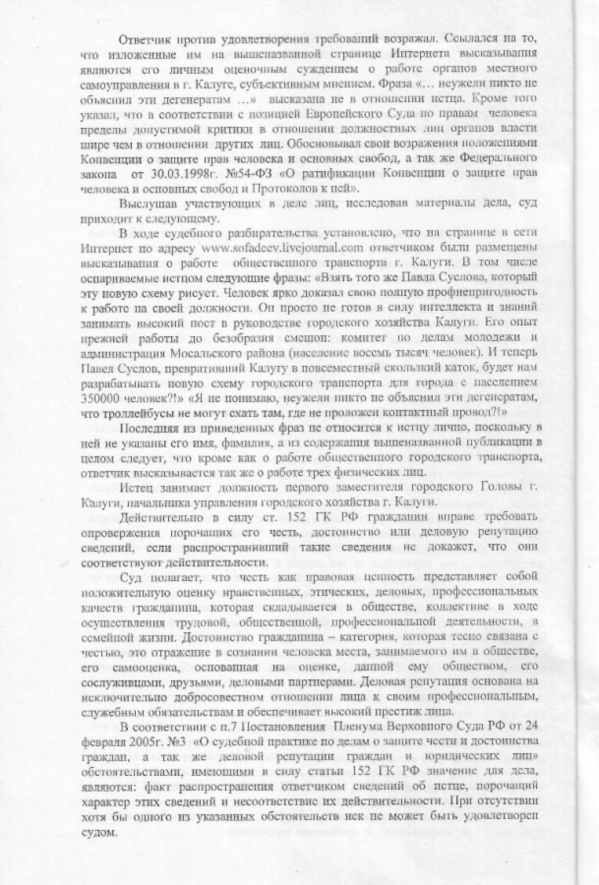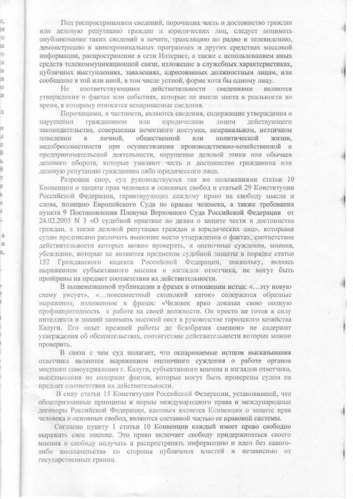 «Как указывал Европейский Суд по правам человека, свобода выражения мнения, как она определяется в пункте 1 статьи 10 Конвенции, представляет собой одну из несущих основ демократического общества, основополагающее условие его прогресса и самореализации каждого его члена. Свобода слова охватывает не только "информацию" или "идеи", которые встречаются благоприятно или рассматриваются как безобидные либо нейтральные, но так же и такие, которые оскорбляют, шокируют или внушают беспокойство. Таковы требования плюрализма, толерантности и либерализма, без которых нет "демократического общества".