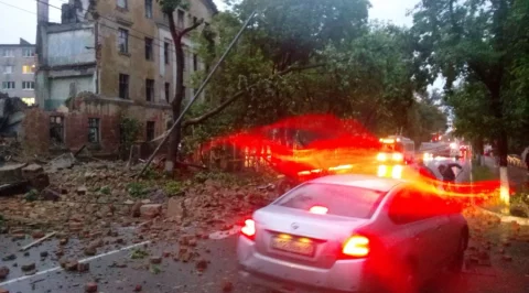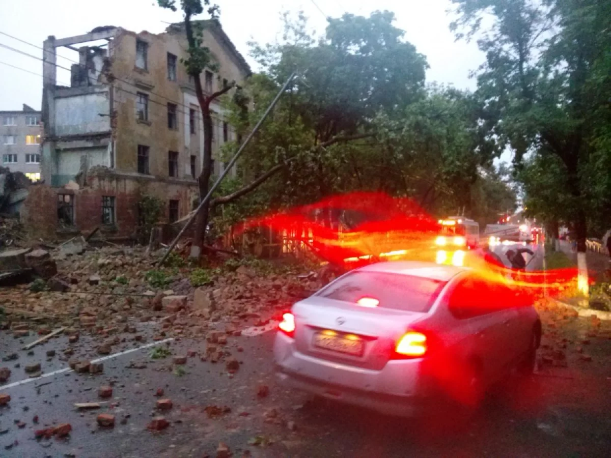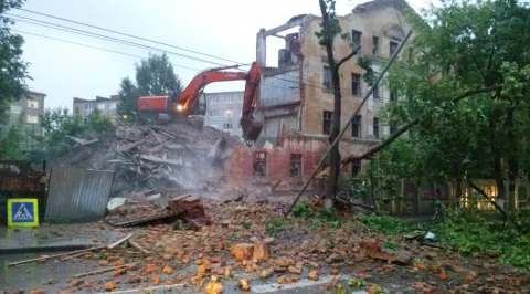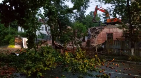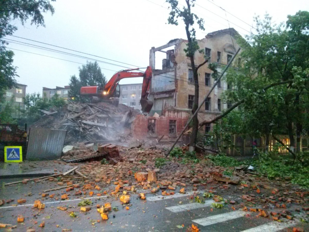 Случилось это сегодня,примерно около 21 часа... Со слов очевидцев,в процессе демонтажа здания сгоревшего общежития КГУ,рухнула стена и повалило стоящее вблизи дерево,которое рухнуло на проезжую часть...