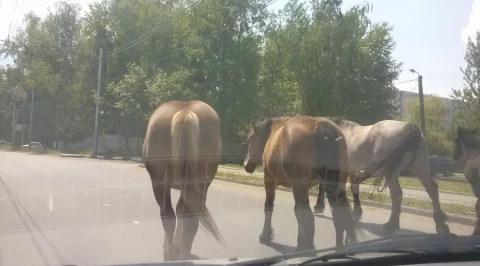 сегодня в около 12 00 ехал по московской мимо "Торгового квартала" в сторону города. ЗА светофором, как поворачивать на стоянку "Торгового квартала" , по проезжай части гуляют кони. Горел зеленый и хорошо что успел полностью остановиться. Гуляют беспорядочно даже машин не боятся кидаются прям под колеса.В КП40 не раз писали что эти лошади гуляют по мкр Кубяка и на газонах "Торгового квартала". Вроде даже писали что найдут хозяев...... В конце концов нужно разобраться с этим . Не известно как могут повести себя эти лошади. А если все же собью... (Что не дай бог!). Лошади разгуливают каждый день!!!