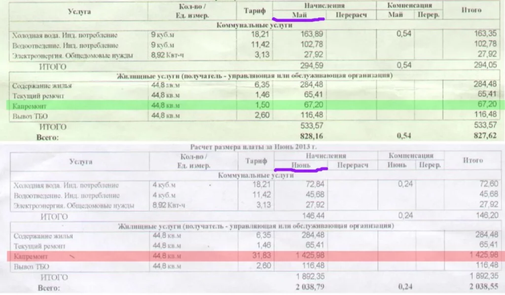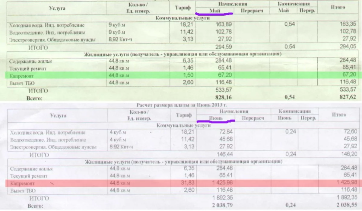 Итак, дамы и господа, прочувствуйте всю необузданность жадности и наглости калужских коммунальщиков. В частности — ЗАО «УК МЖД Октябрьского округа г.Калуги». На днях все собственники жилья в нашем доме получили квитанцию по оплате ЖКУ за июнь. Каково же было удивление владельцев приватизированных квартир, когда они увидели строчку «Капремонт». Коммунальщики задрали тариф по этой статье ни много, ни мало аж в 21 раз. То есть — на 2 122%!!!