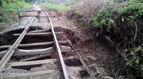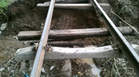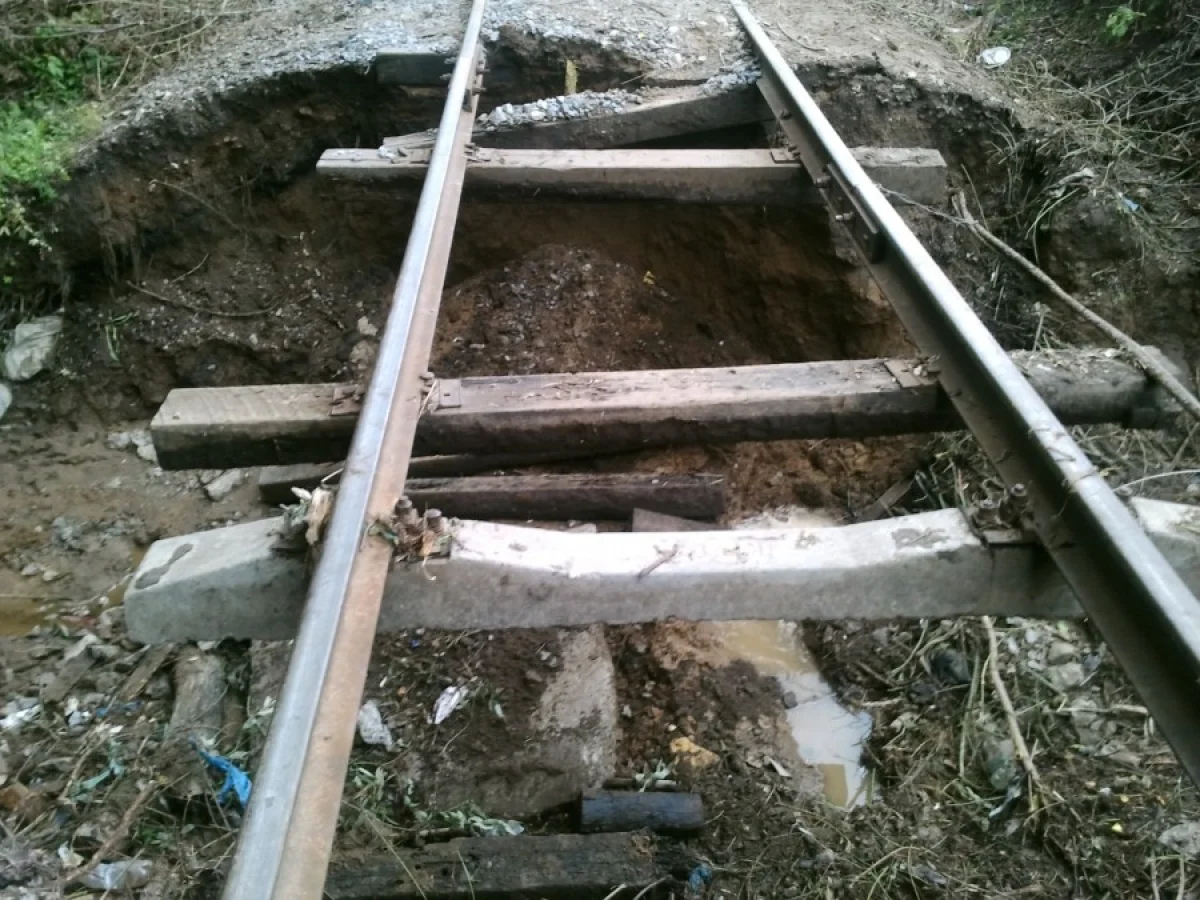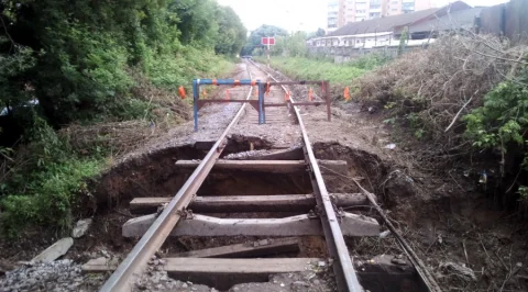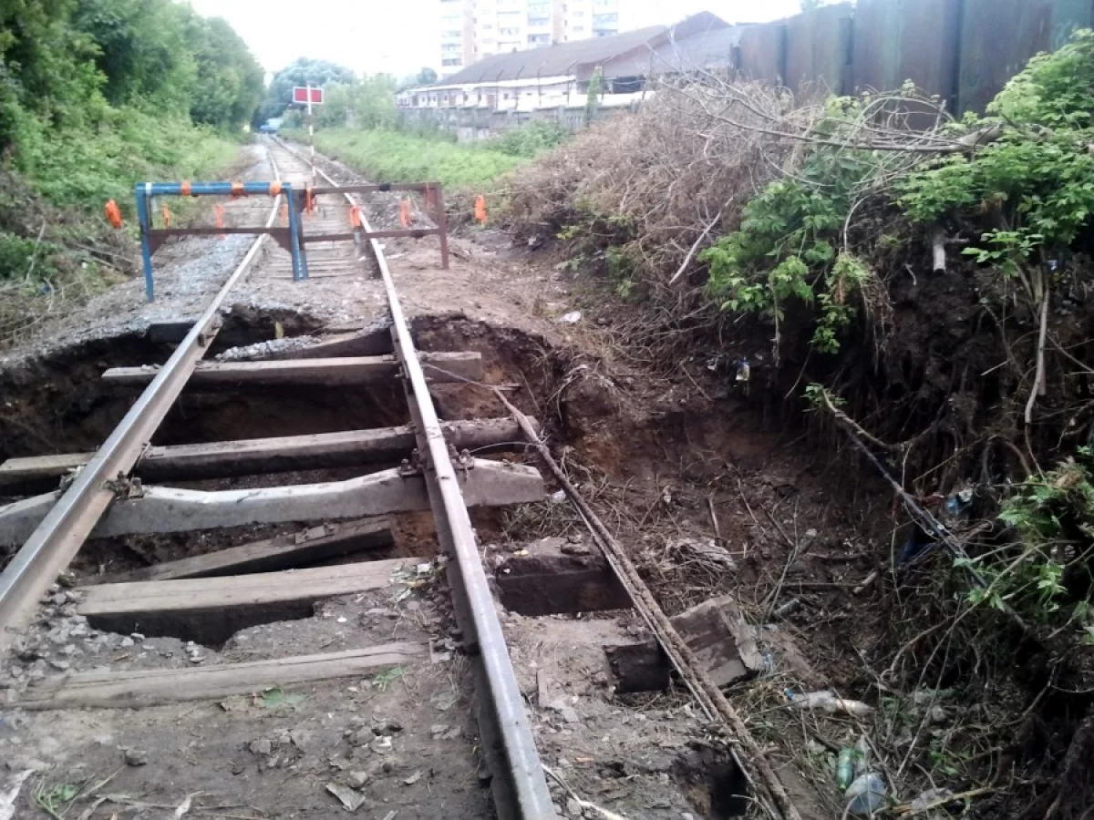 На "Окской" ветке в Калуге в результате обильных осадков подмыло ж/д путь.