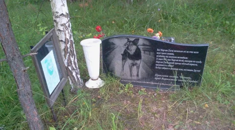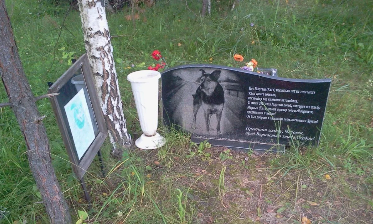 Сегодня ездил в город Козельск и на обратном пути не пожалел времени съездить на могилу к верному псу Мартыну или как его еще называли Хати. Который на месте гибели своего хозяина прожил 3 года.
