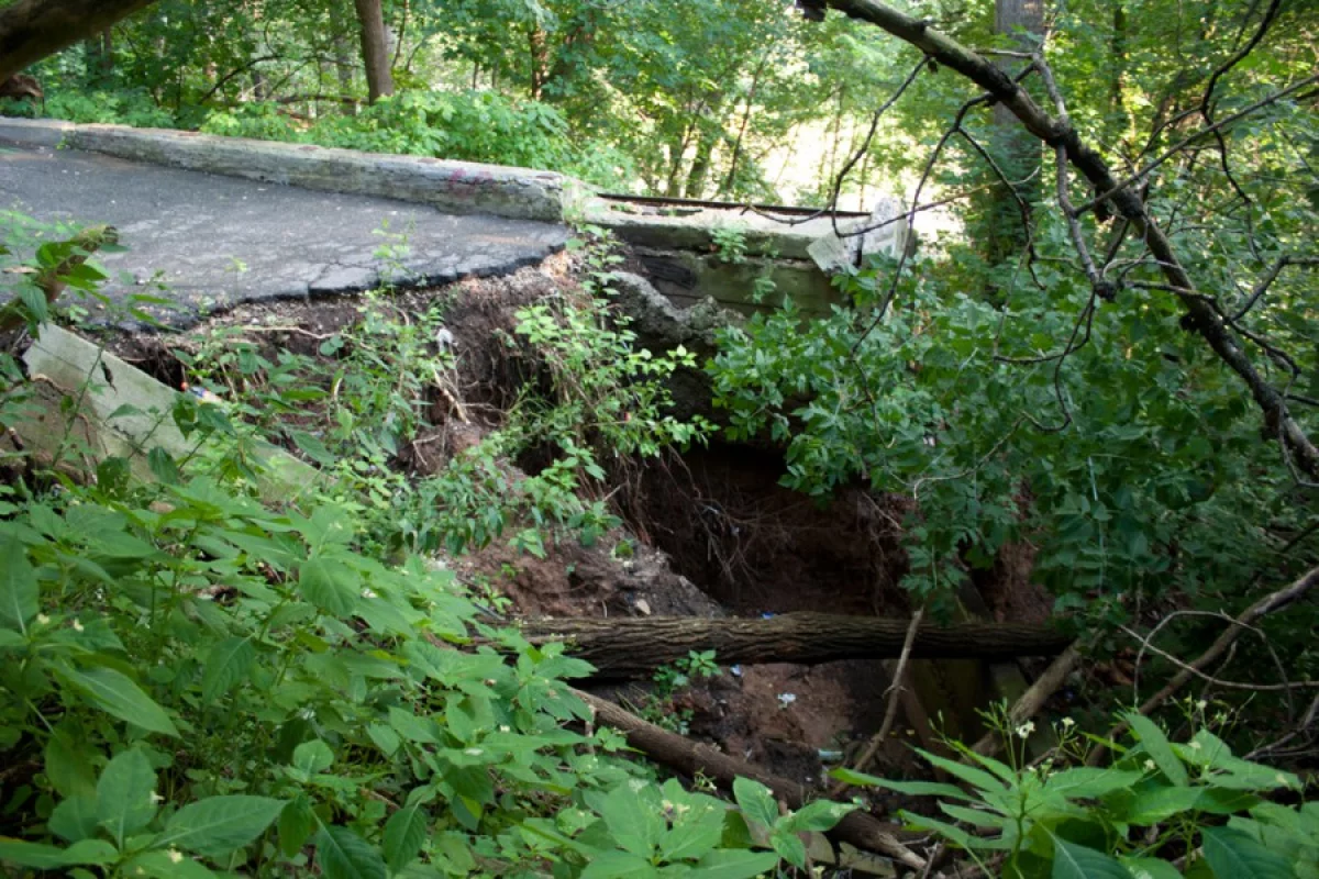 Сильные ливни не прошли даром. Все еще помнят, как размыло грунт, и провалился асфальт на улице Набережной. Однако, мало кто догадывается, что чуть выше от этого места на пешеходной дорожке, ведущей в парк Культуры образовался метровый провал асфальта, что вкупе с разрушающейся лестницей делает этот путь весьма опасным для прохода.