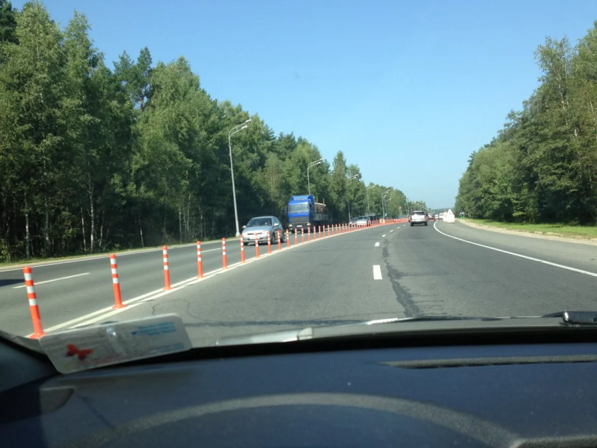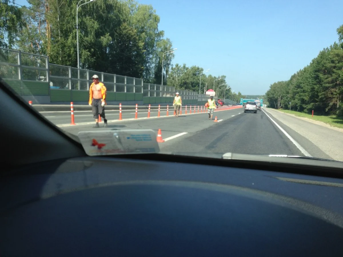 Второй день на участке автодороги Калуга-Анненки идут работы по монтажу разделительных гибких столбиков (да-да, такое название у целой группы столбиков по каталогу:))).