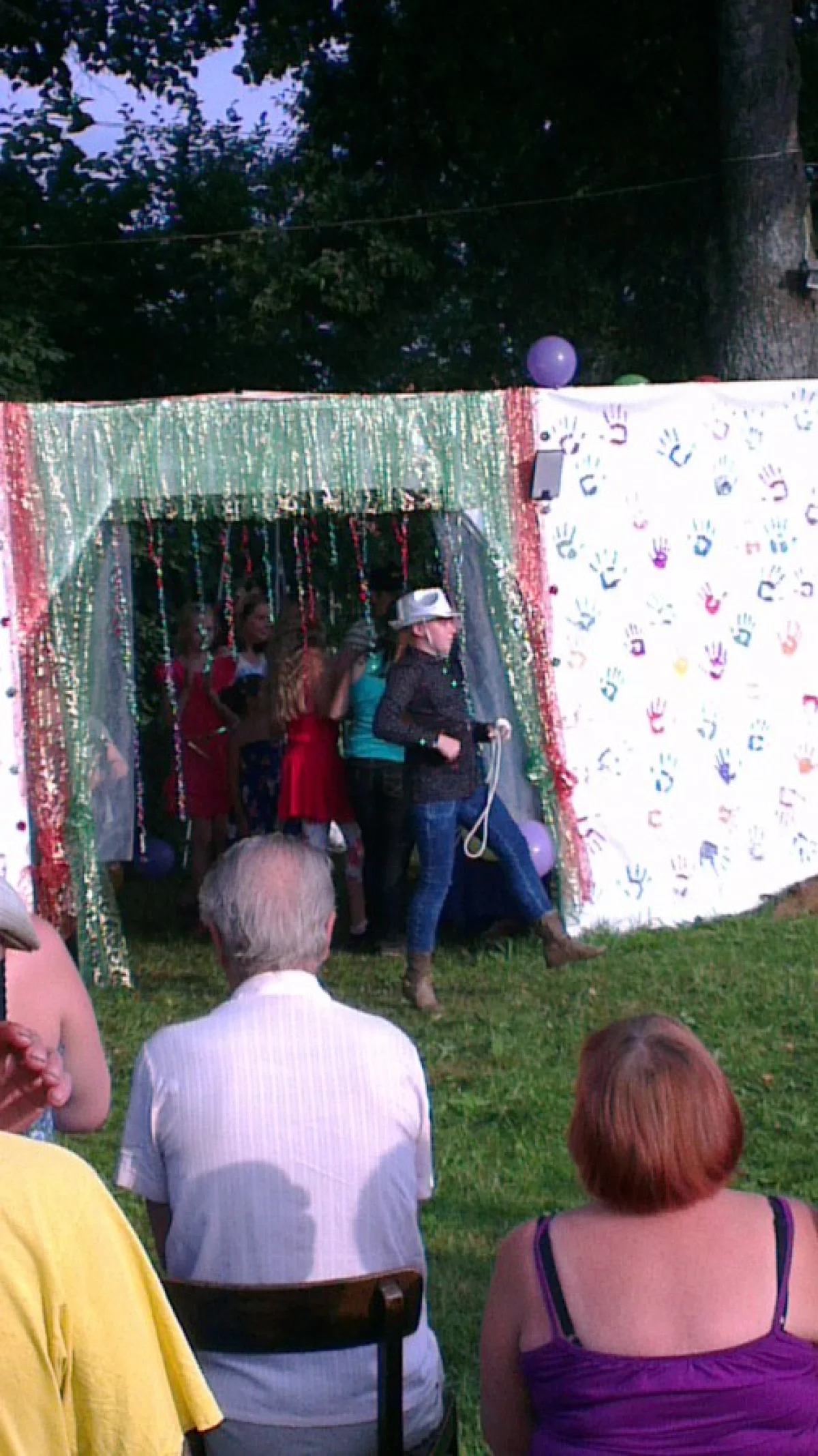В деревне Пнево Малоярославецкого района вот уже второй год силами местных детей проводится детский концерт-так называемый день деревни Пнево.В концерте принимают участие и мал и велик-дети в течение месяца готовятся-репетируют номера-шьют костюмы-хватает еще талантов на Руси.Кто то поет-кто то пляшет-кто то играет на барабанах-кто то читает стихи.В общем праздник проходит весело и задорно.Вот и в этом году концерт прошел 6 июля-и даже прошедшая гроза не помешала проведению концерта-в деревне вырубили свет и пришлось мобилизовать взрослых-но они не подвели-принесли генератор и электричество подключили.В течение 2 часов зрители не уходили и даже когда закончился концерт люди просили исполнить некоторые номера на бис.Так держать.