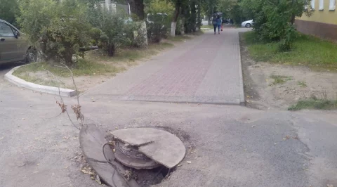 Кстати, пешеходы идущие по тротуару из красивой плитки, тоже рискуют своими ногами попасть в этот люк.