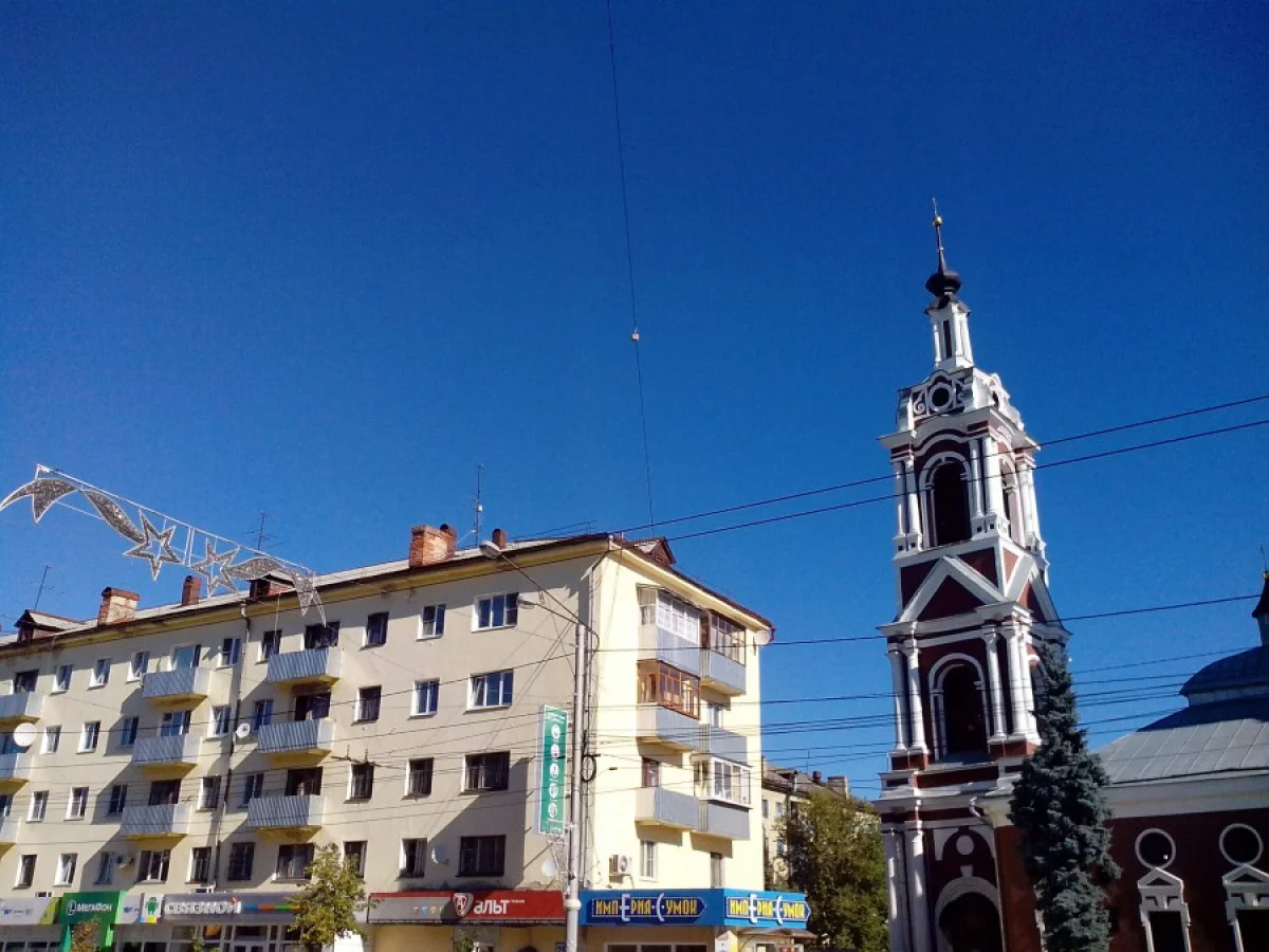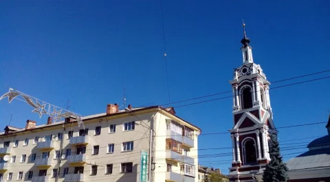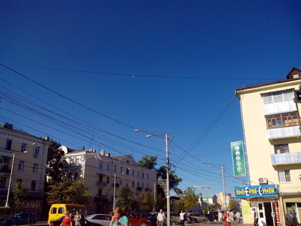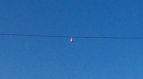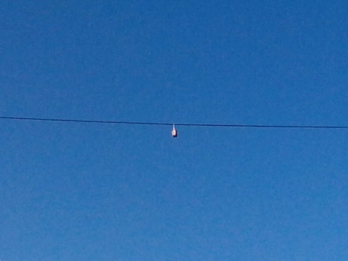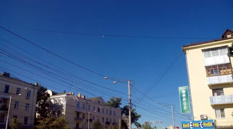 На пересечении улиц Кирова и Московская, если посмотреть вверх, на проводе висит пластиковое ведро.