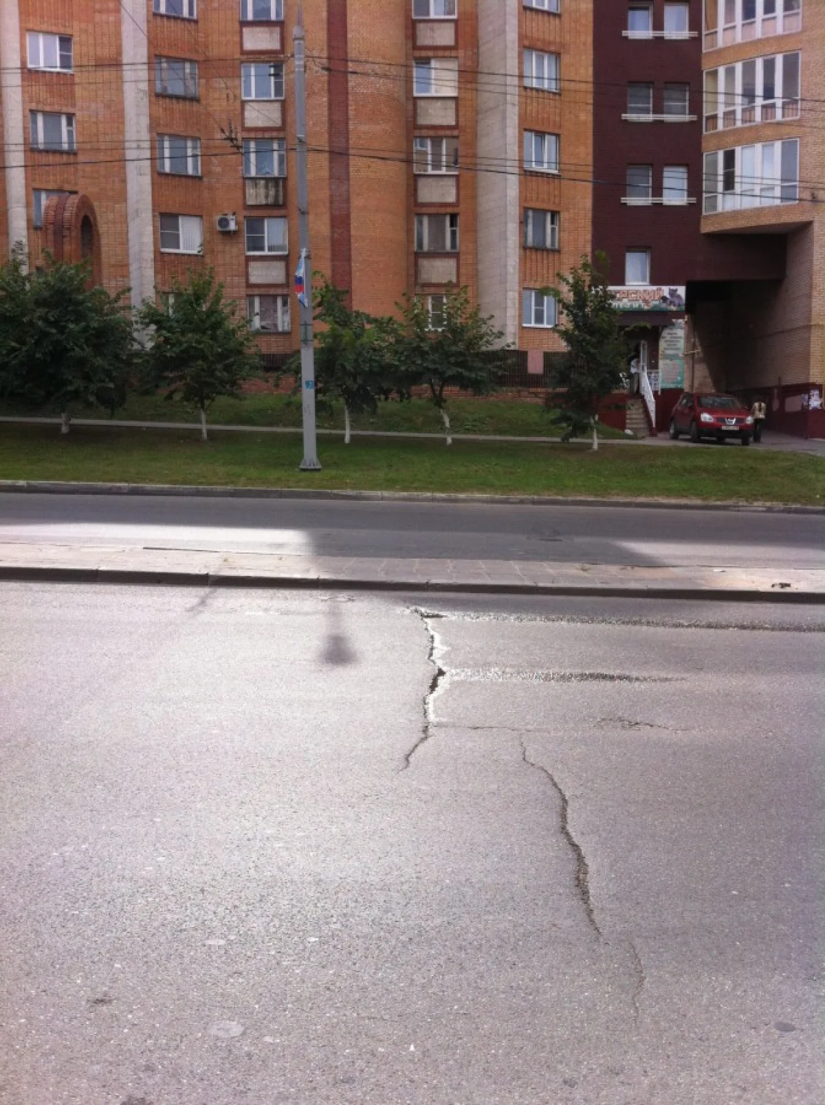 В районе дома № 9 по улице Гагарина, предположительно, появился еще один участок плачущей дороги. Как бы не было беды. Мне кажется, что могут появиться новости под заголовком: "Плачущая дорога - 3", "Плачущая дорога - 4". Только бы не было такого: "В Калуге Камаз провалился под землю на дороге". Или что-то в этом роде.